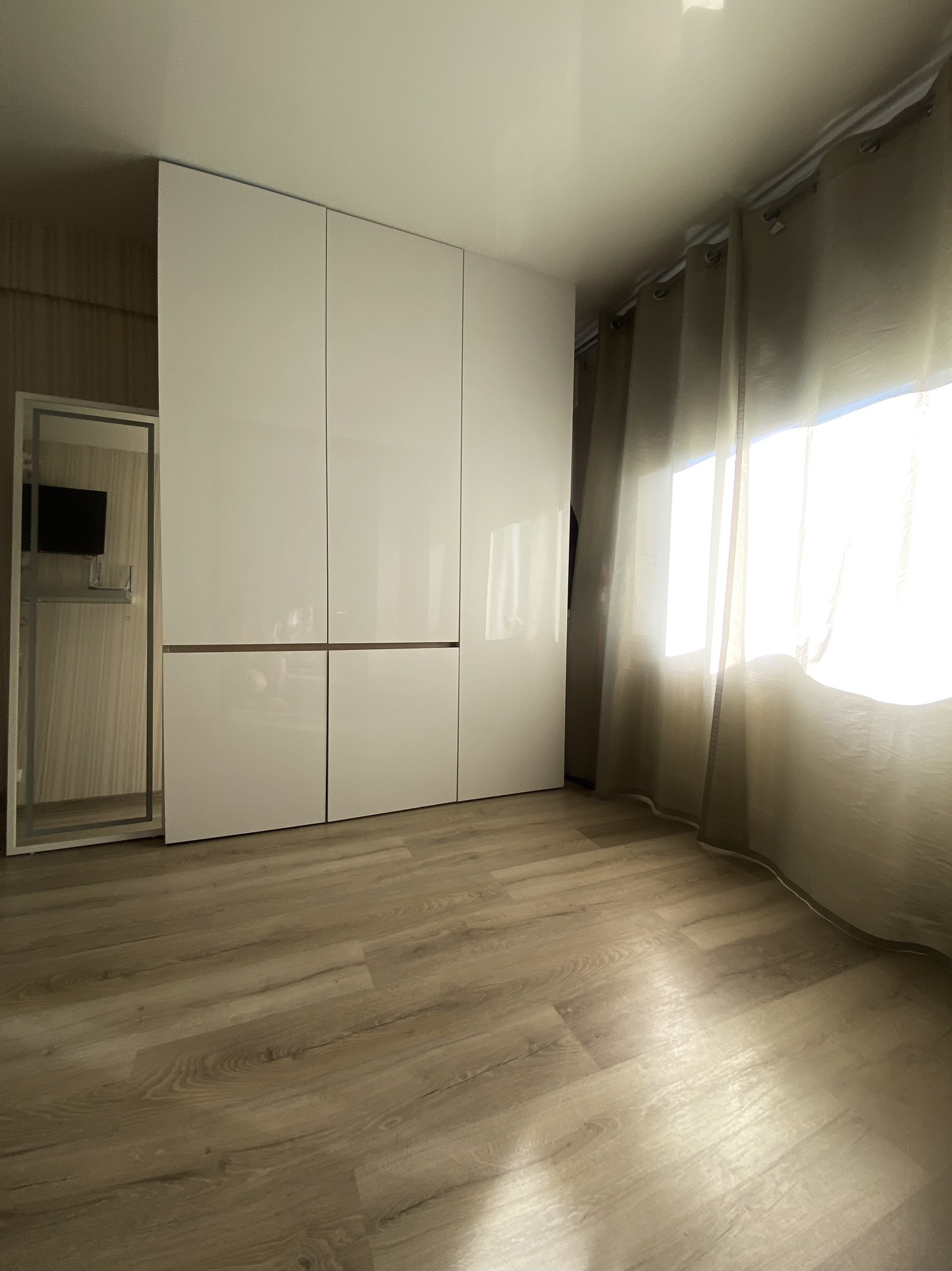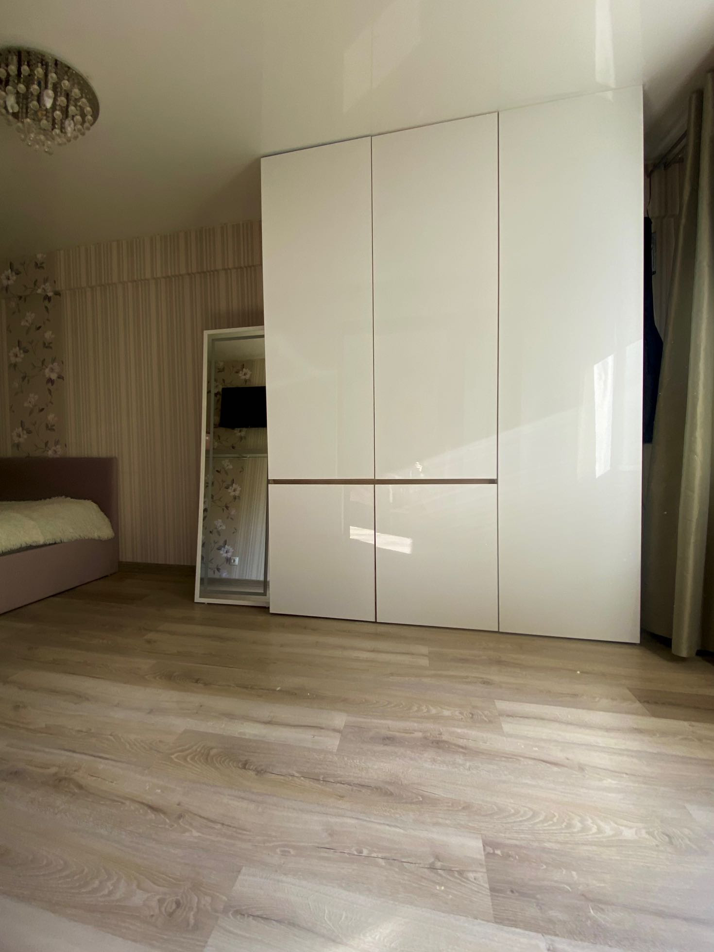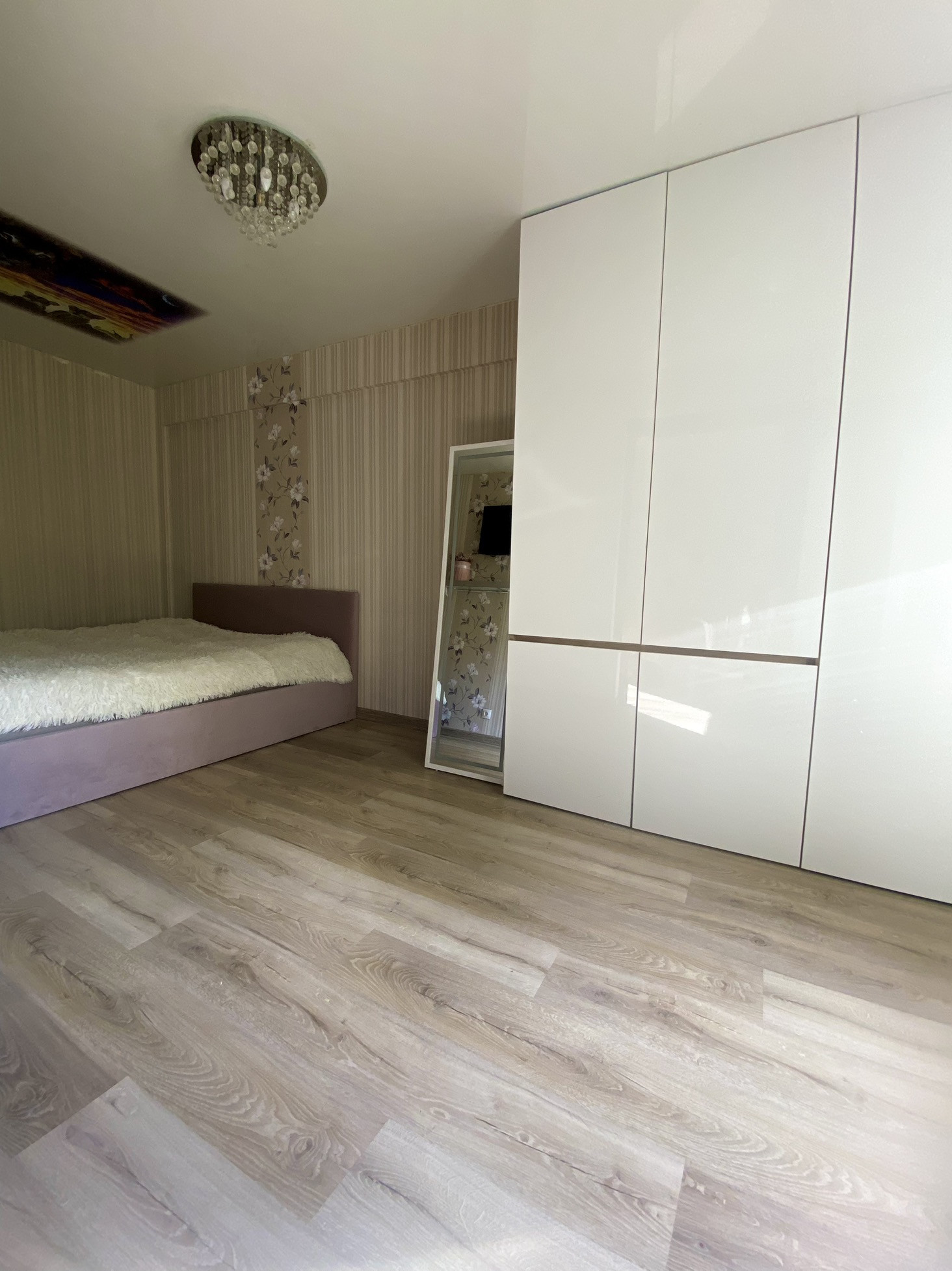Ремонт  выполнен из качественных материалов -пол керамогранит-теплый кухня и ванная комната , в другом пространстве положен ламинат -скрип отсутствует!