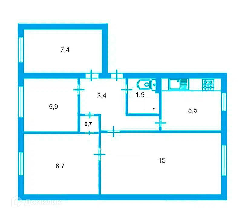 -4 комнаты 7.4+5.9+8.7+15 кв.м.