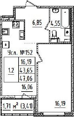 Жилая площадь 16.19 м2