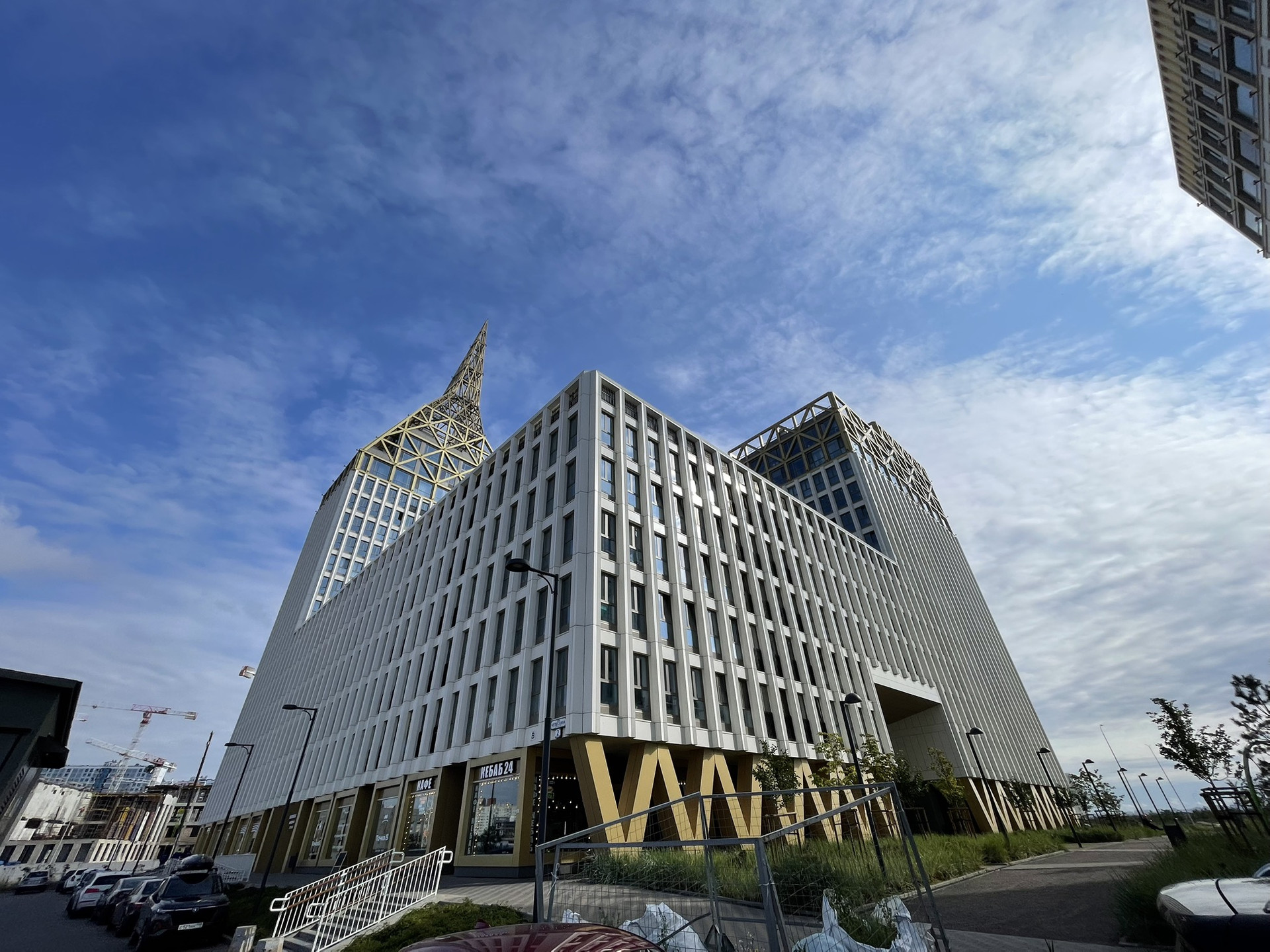 Дома выполнены в стиле хаотизм и украшены башнями с заостренными золотыми верхушками красивой изогнутой формой.