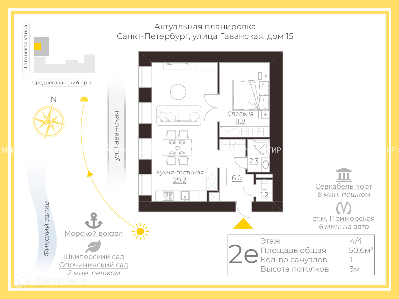 1-комнатная квартира, 51 м2, этаж 4 / 4, на продажу в Санкт-Петербурге, Гаванская улица, 15