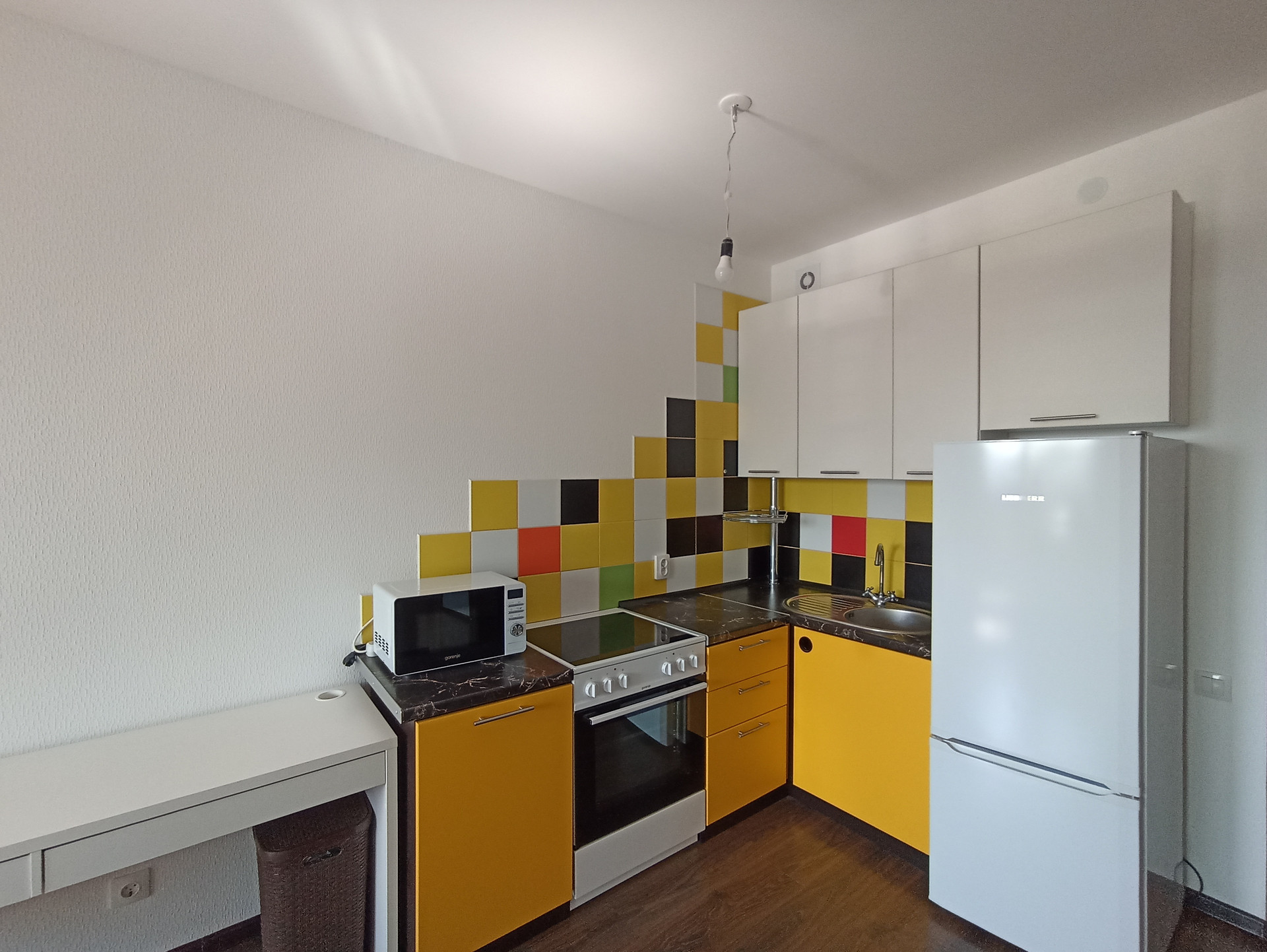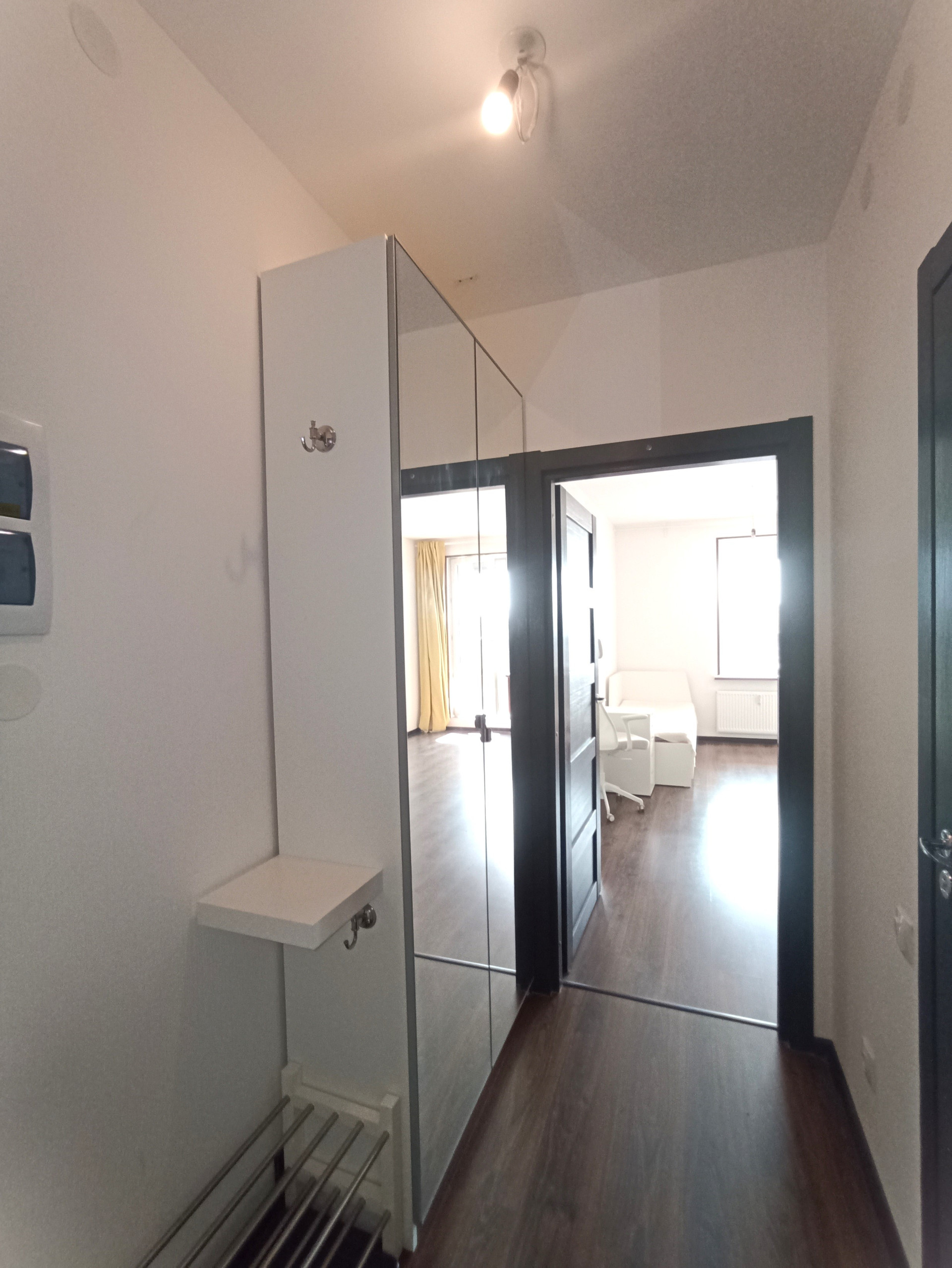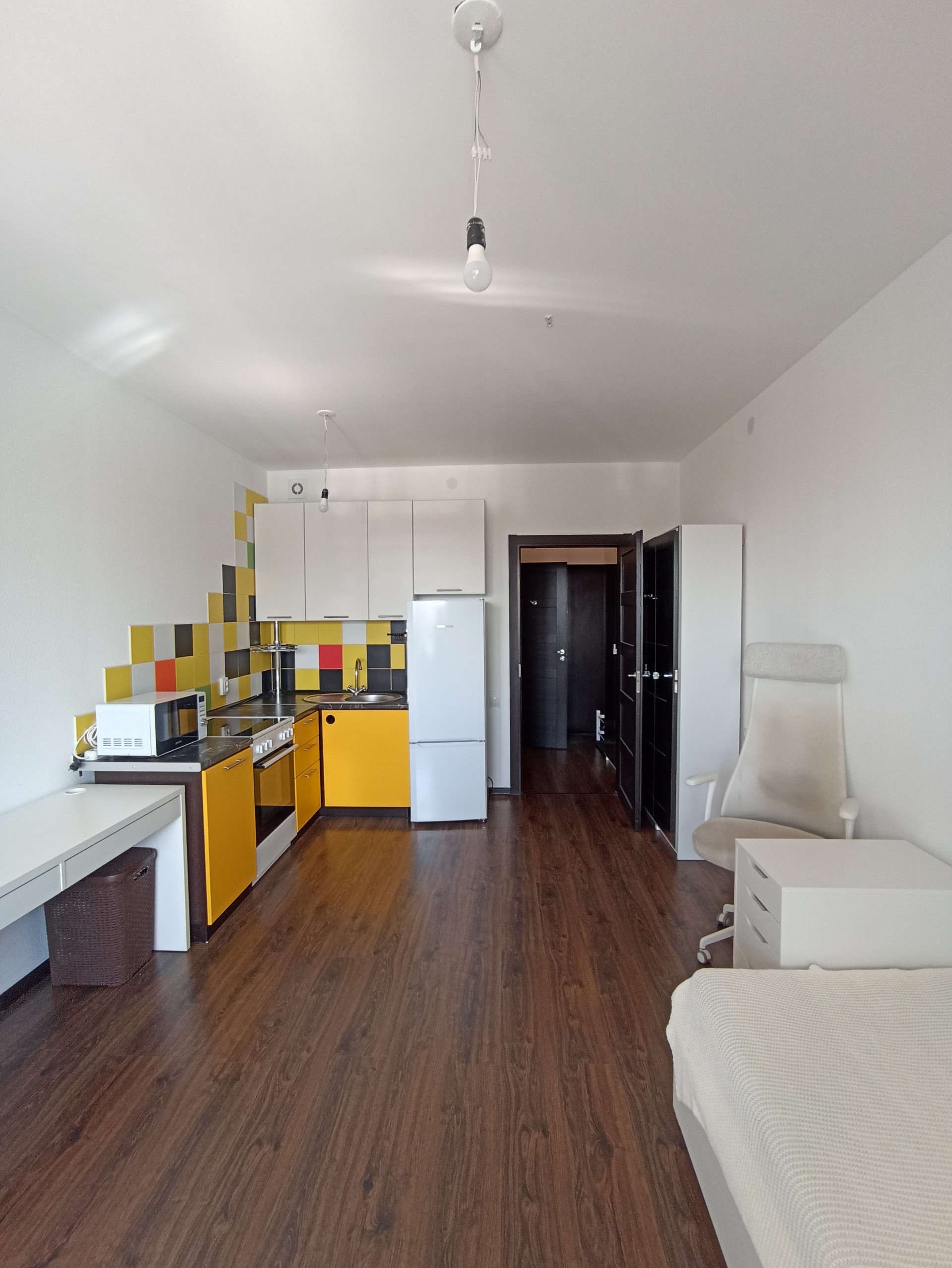 Квартира теплая и тихая. 8/10эт. Планировка правильной формы. Общая площадь- 23.5 м( по ЕГРН)+ большой балкон -4.6 м , с/узел совм-3.09м, прихожая-3.07м. Кухонный гарнитур , холодильник Liebherr ,плита Gorenje, стиральная машина Samsung на 6 кг, кровать, стол, прикроватная тумба, кресло, зеркальный шкаф, обувница. Вся техника новая, подключена с гарантией.