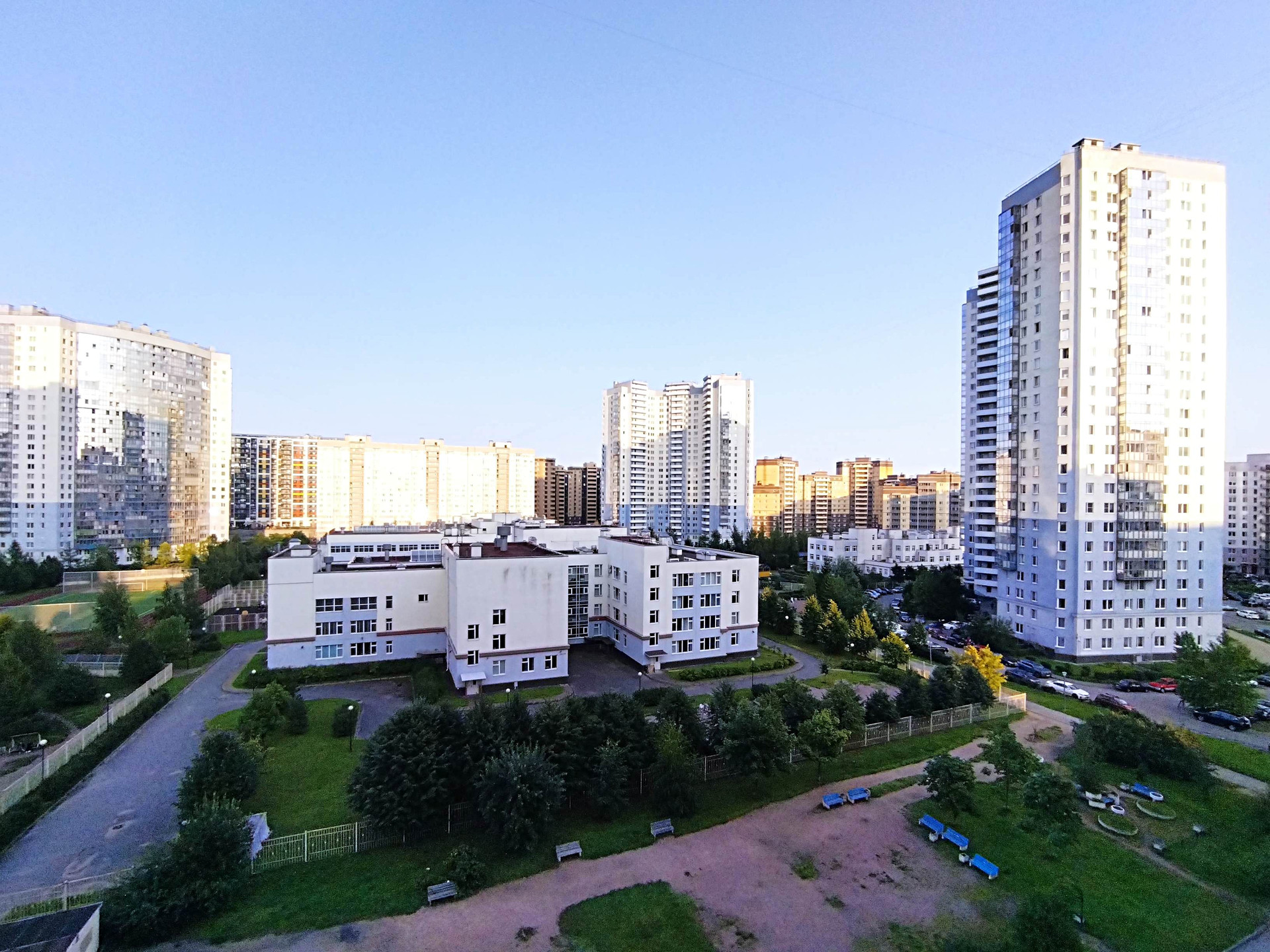 В пешей доступности от 2 до 15 минут современные школы, детские сады. Дом прикреплен к новой школе 630, конечно доступны и другие. Ледовый зал, "Олимпийские Надежды", Молодежный клуб Приморского района, фитнес. Стадион Зенит-Арена в 40 минутах ходьбы, через красивый парк 300-летия Санкт-Петербурга и по пешеходному Яхтенному мосту, с великолепным видом на залив.