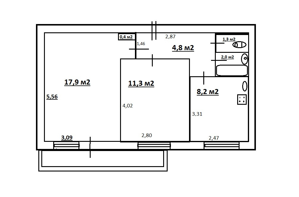 Санузел 1 раздельный