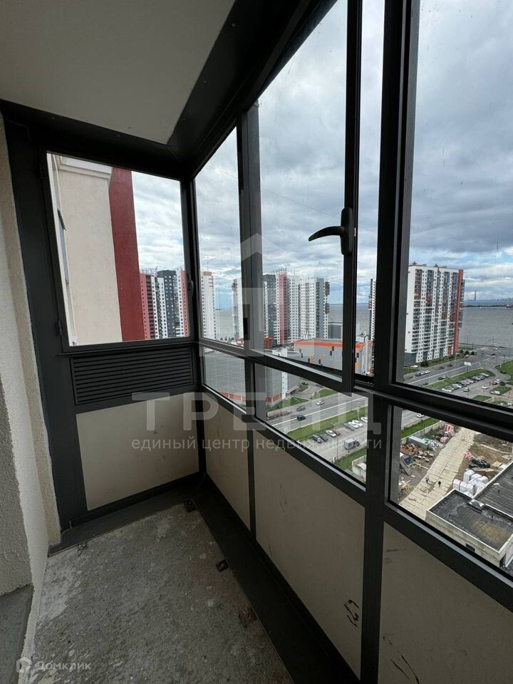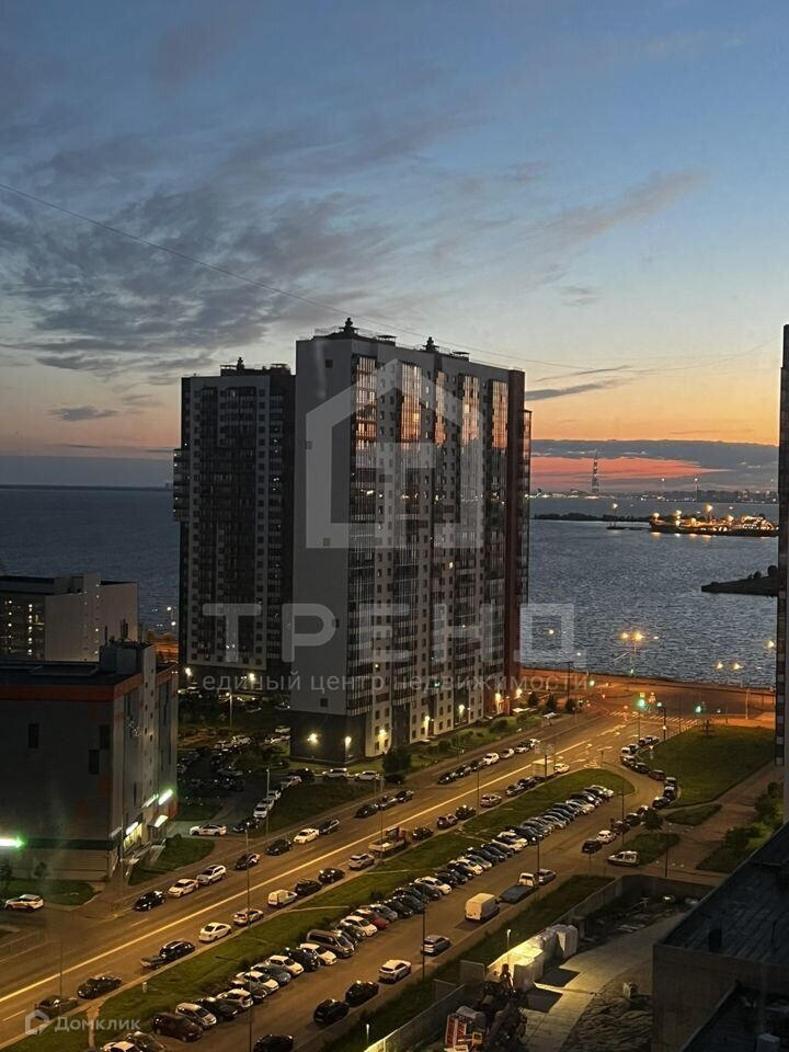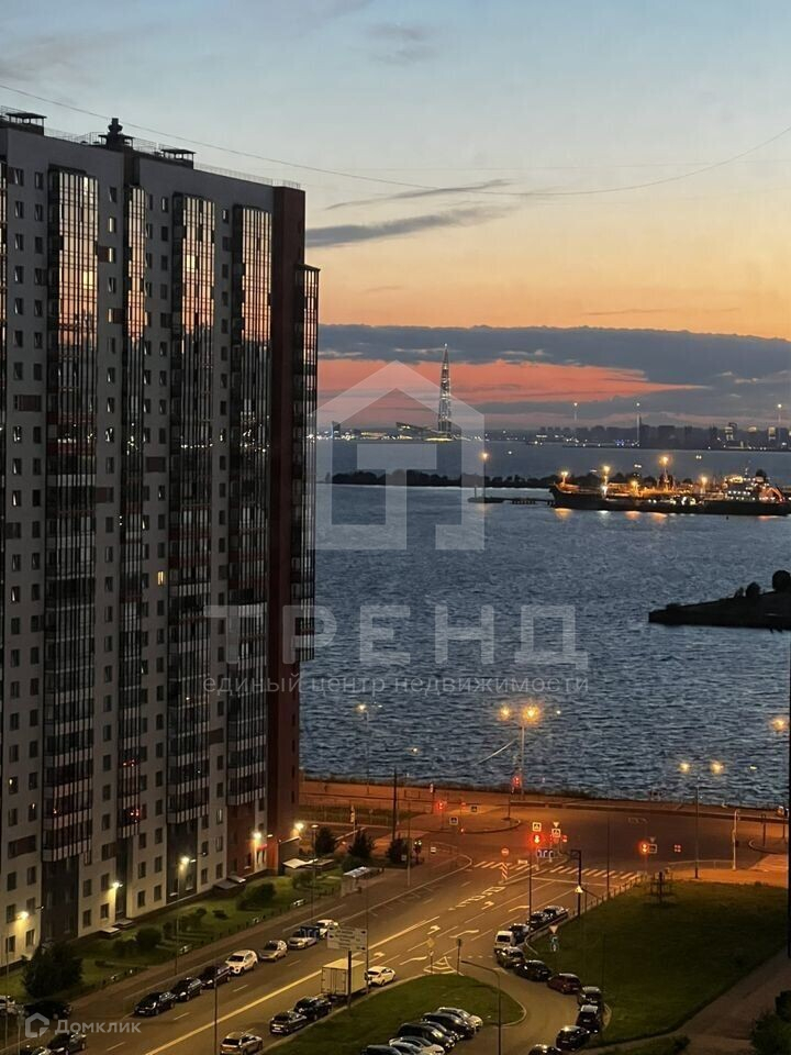 Квартира находится на высоком этаже, откуда открывается потрясающий вид на залив и Лахта-центр