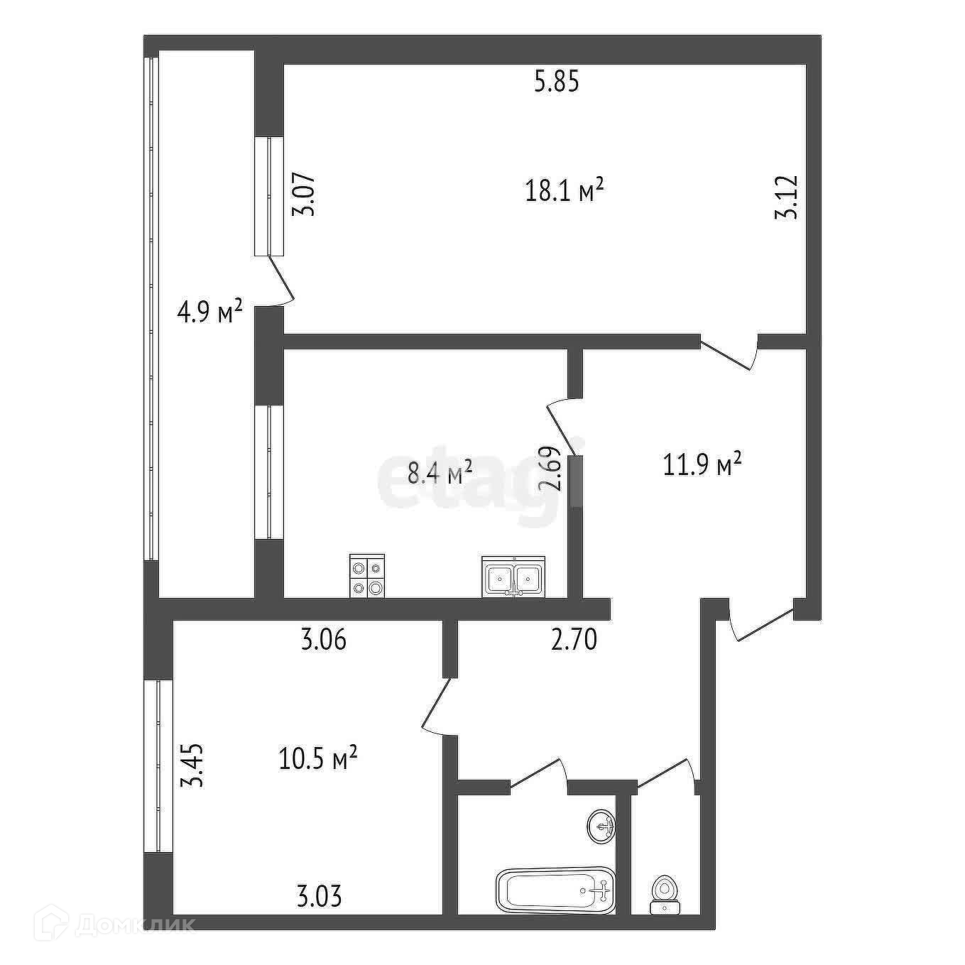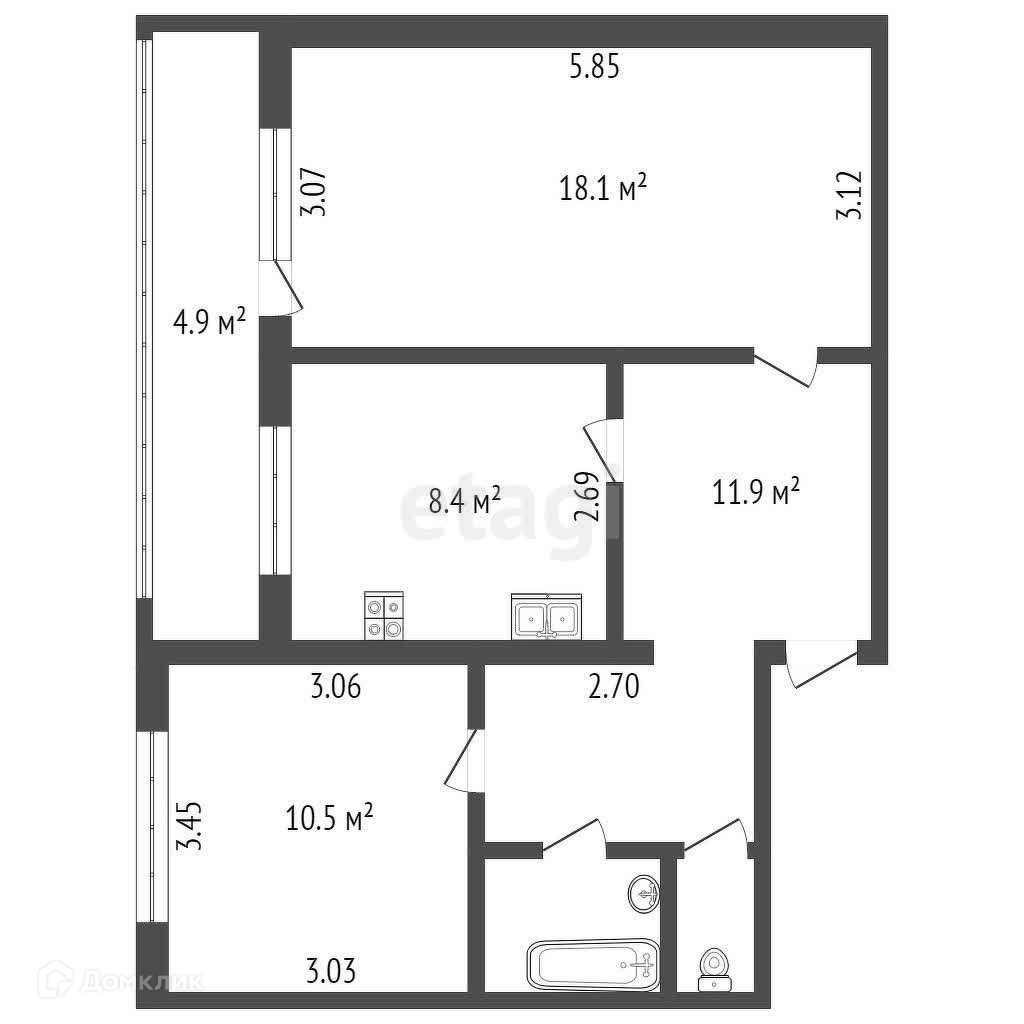 - две изолированные комнаты 18,1 и 10,5 кв.м.
