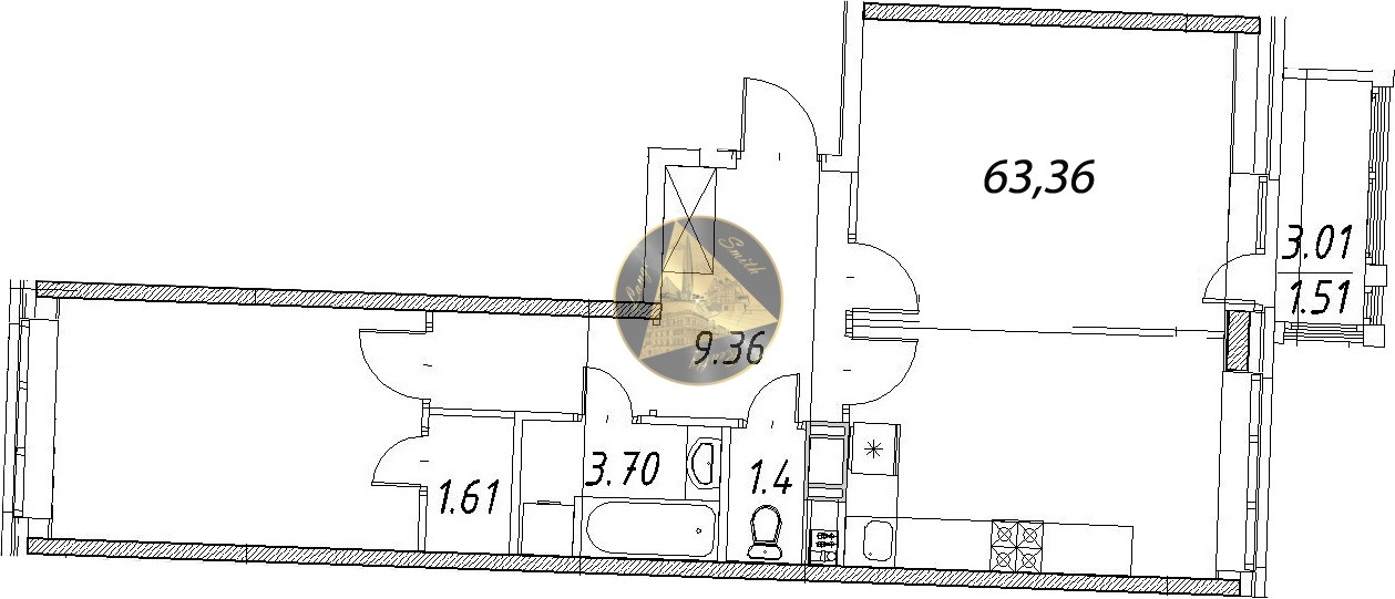- Общая площадь квартиры 63,36 м2