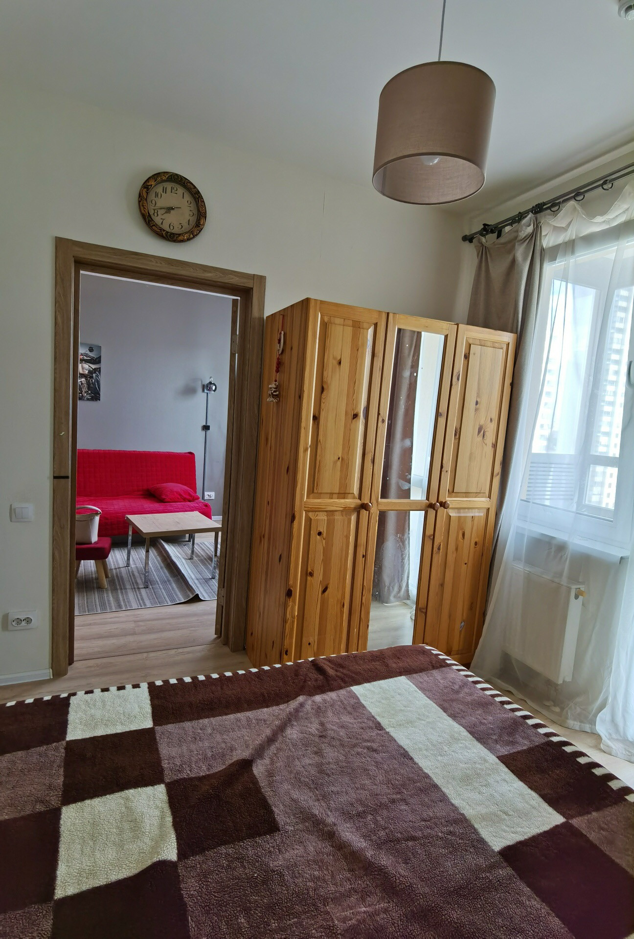 Очень светло, юго-восток. План квартиры - см фото. В Квартире - небольшая встроенная кухня с электрической плитой, вытяжкой , духовкой , электрическим чайником, микроволновой печкой, холодильником. Интернет Wi-Fi, SMART-TV . Можете смотреть IVI , ну и т. д., на что подписаны. В спальне - качественная двуспальная кровать HOFF 1600*2000 см. В гостиной раскладной диван IKEA 1600*2000 см. Есть возможность поставить Ваш большой стол у окна в гостиной, если Вы работаете или учитесь удаленно
