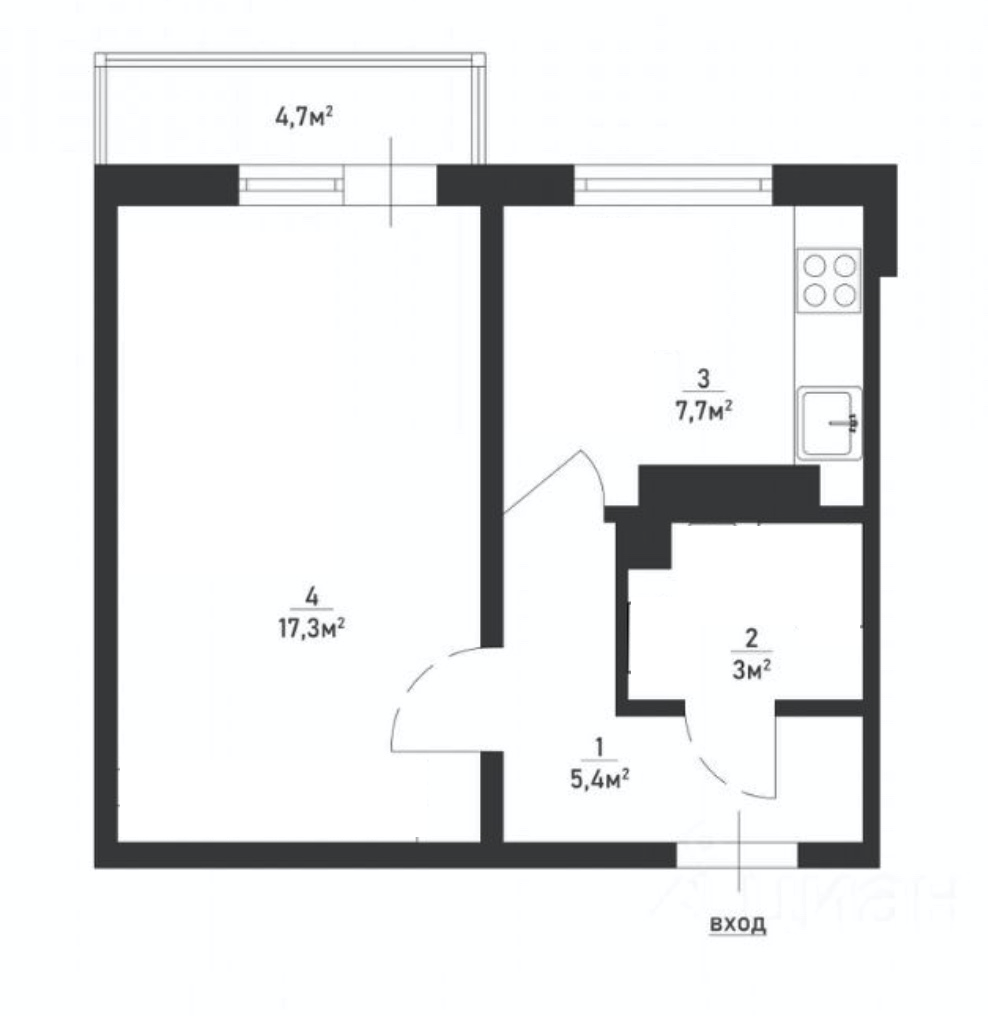 Жилая площадь 17.3 м2