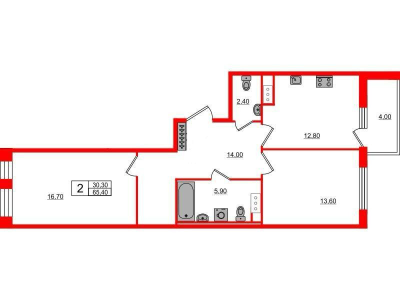 2-комнатная квартира, 65.4 м2, этаж 9 / 10, на продажу в Санкт-Петербурге, Манчестерская улица, 3