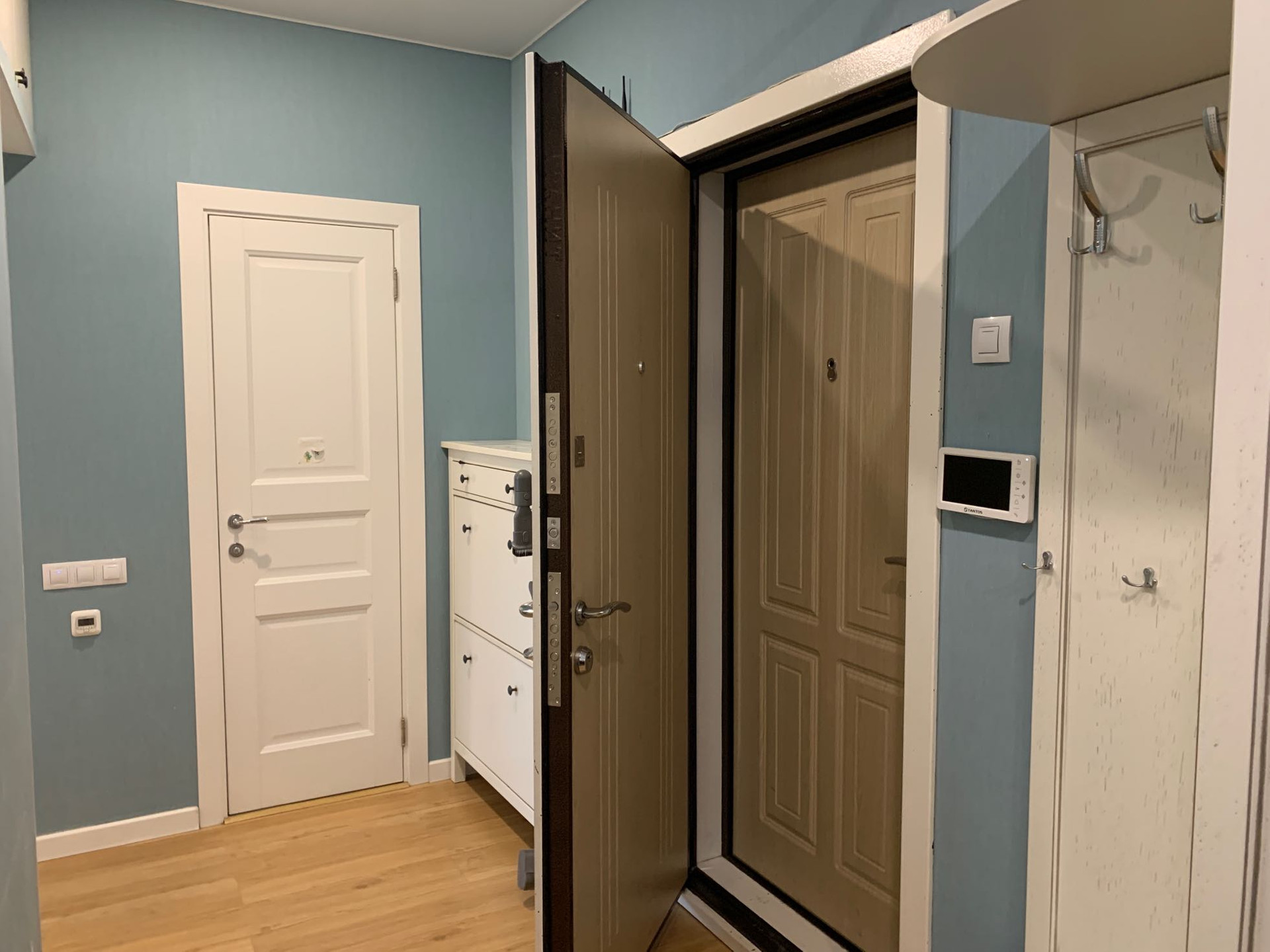 * В квартире сделан качественный ремонт: в коридоре и на кухне премиум кварц виниловая плитка Винилам, в туалете итальянская плитка, в комнатах высококачественный ламинат. Натяжные потолки. Рулонные шторы в остекленной лоджии. Видеодомофон. Комнатные двери Волховец в скандинавском стиле. 2 мощные входные двери Гранит с надежными замками и дополнительной звукоизоляцией. В ванной и туалете теплые полы. Застекленная лоджия идеально подходит для оборудования дополнительных мест хранения или для отдыха.