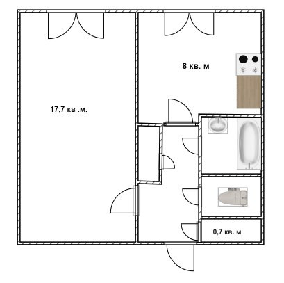 Жилая площадь 17.7 м2