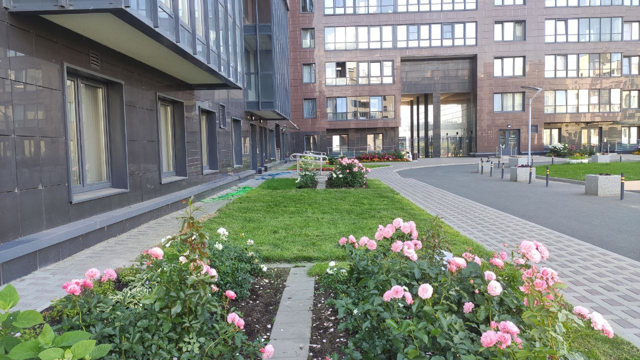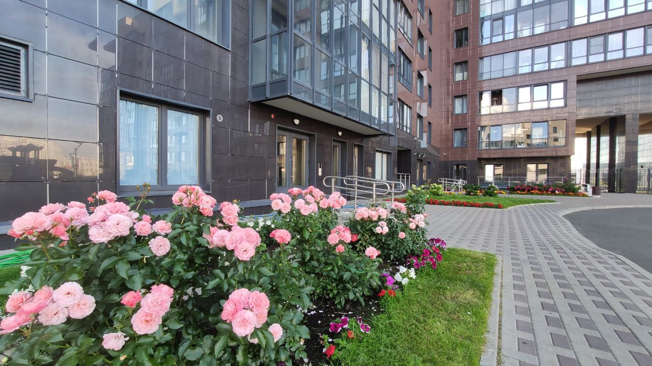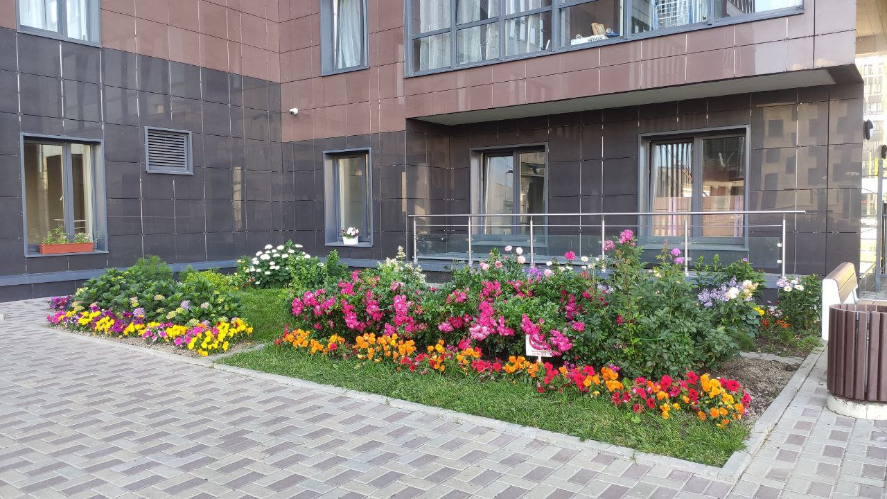 · благоустроенная территория, летом прекрасный цветник во дворе