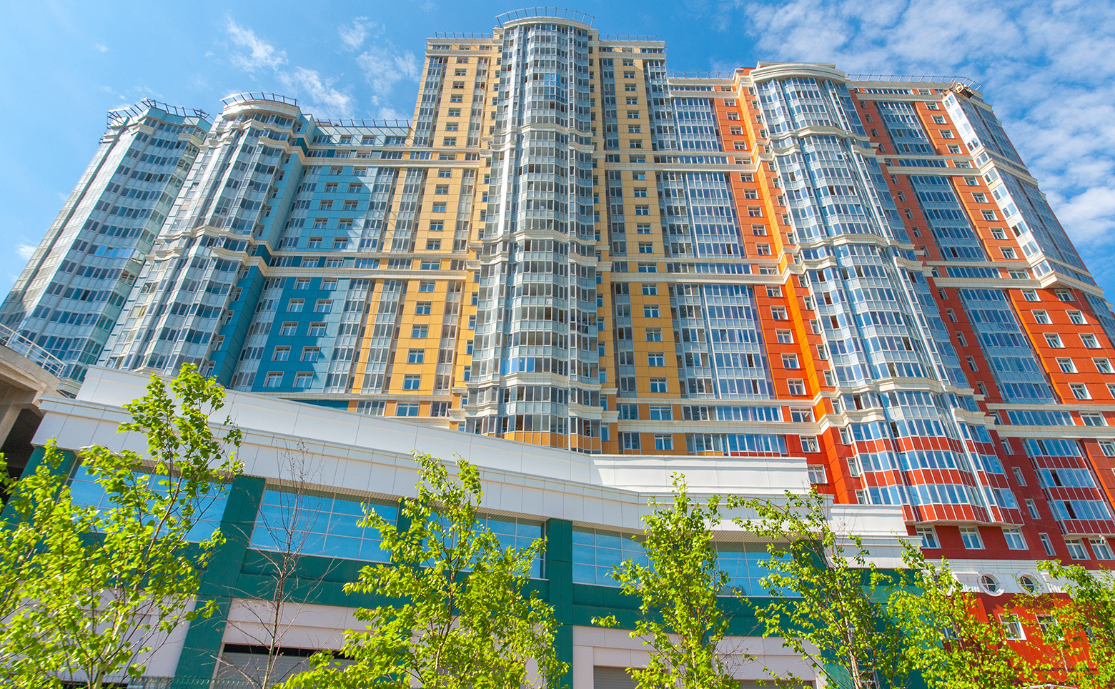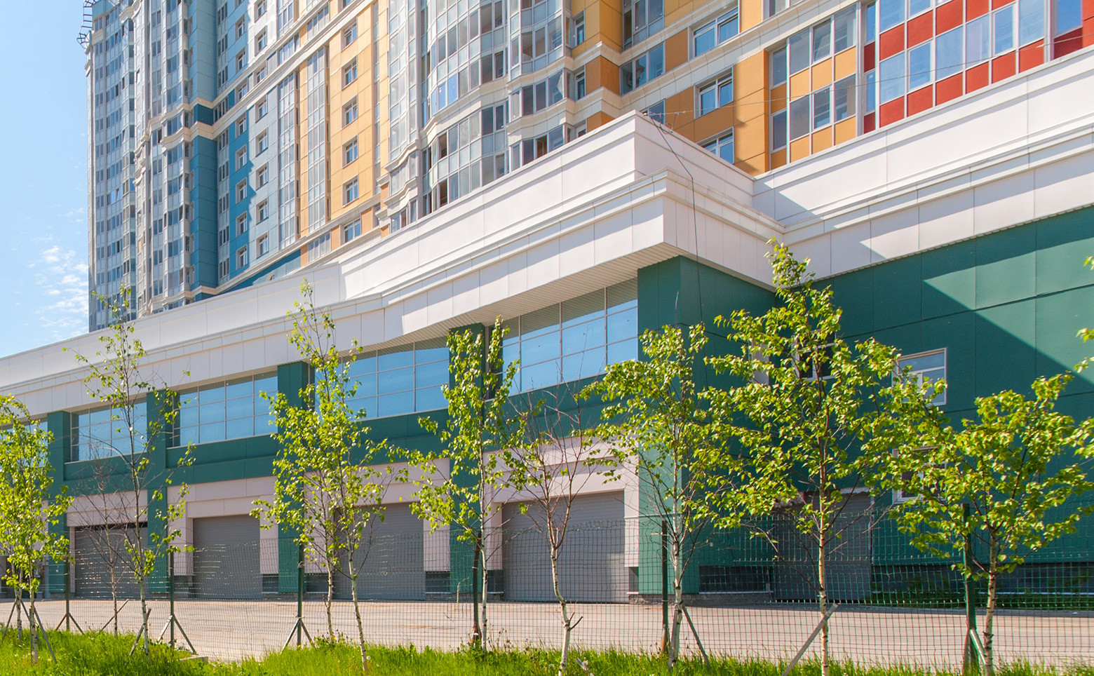 На первых этажах коммерческие помещения.