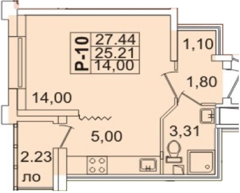 Общая площадь 24.9 м2