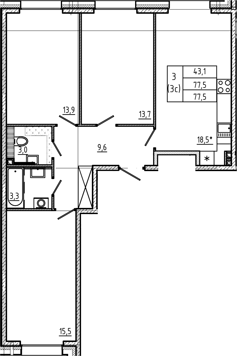 Общая площадь 77.5 м2