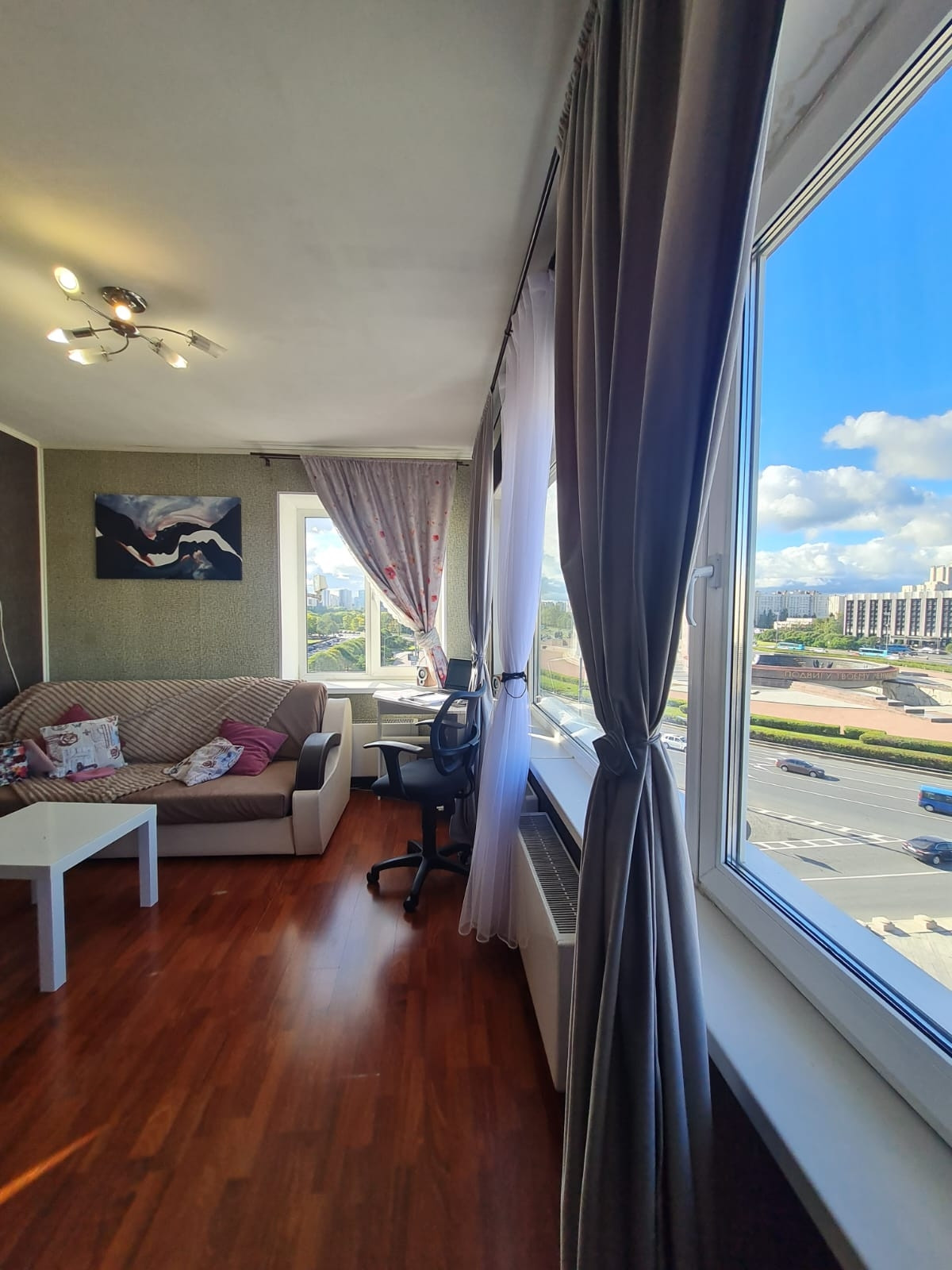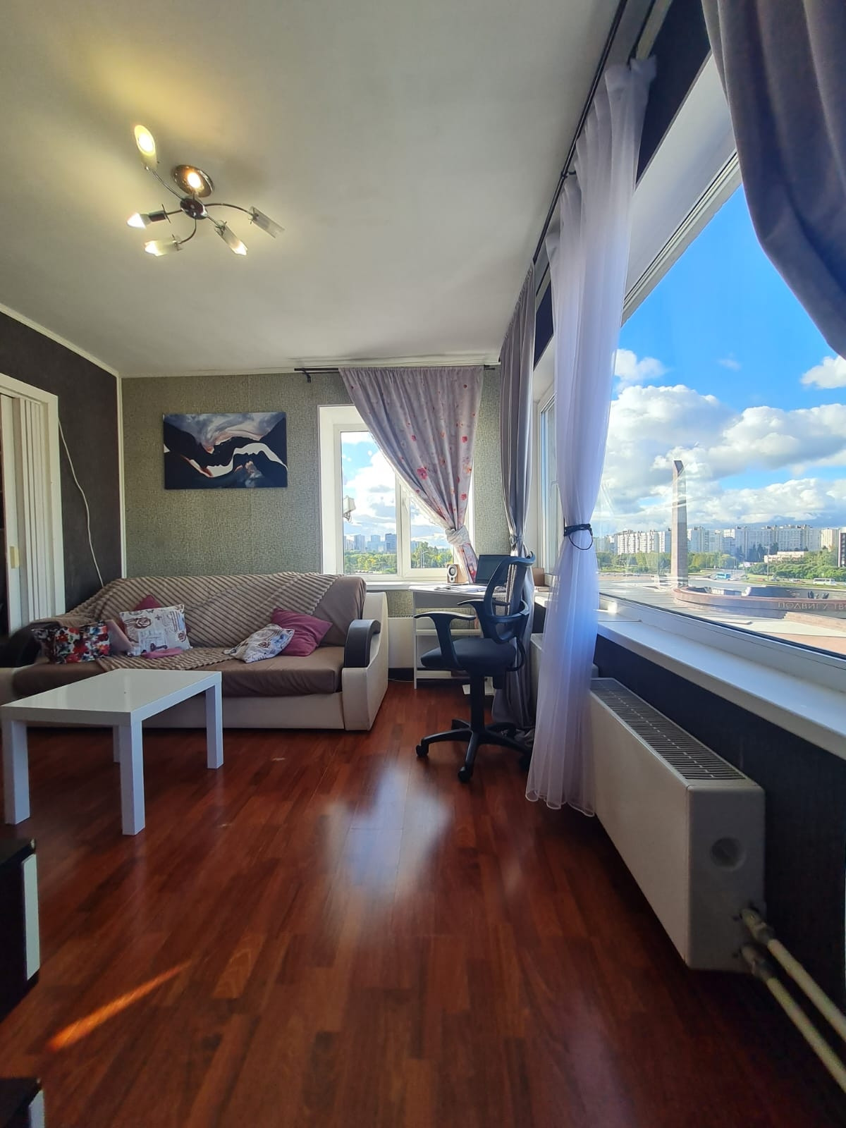 Квартира  с уникальными  видовыми характеристиками!  Окна квартиры во всю стену, открывается потрясающий вид на город и на площадь Победы. Продается в прямой продаже однокомнатная  квартира!  Квартира находится в лучшем  и престижном районе города - в Московском. Квартира с интересной планировкой.