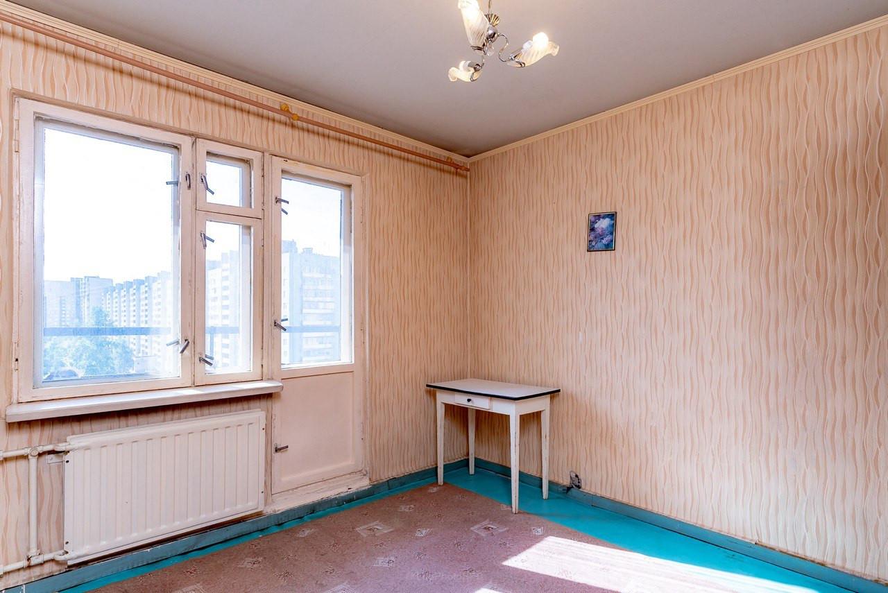 Квартира находится на 8 этаже, очень светлая, окна выходят во двор и на Ириновский проспект.