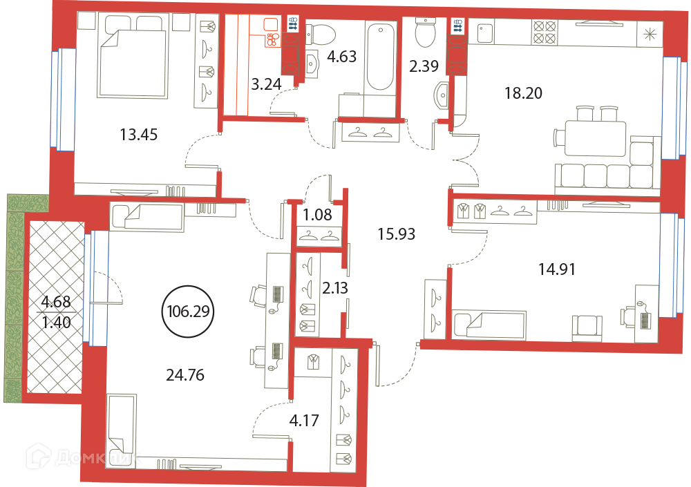 Общая площадь 106.29 м2