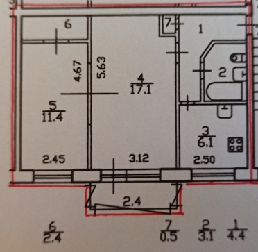 Площадь кухни 6.1 м2