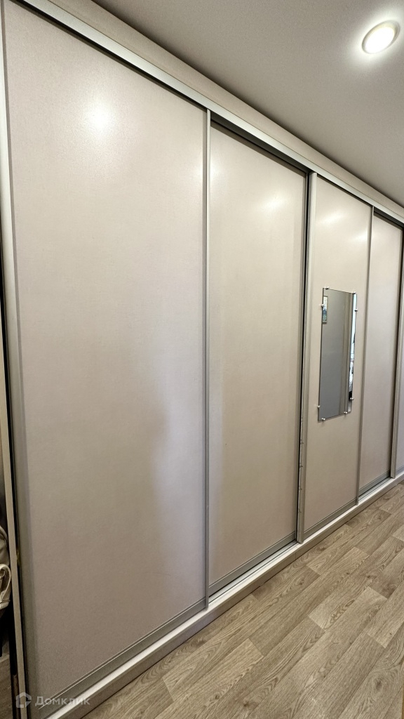 Просторная прихожая, где размещен вместительный шкаф-купе, с кладовой и дополнительным местом для хранения