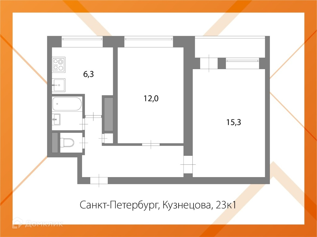 2-комнатная квартира, 45.7 м2, этаж 4 / 9, на продажу в Санкт-Петербурге, проспект Кузнецова, 23к1