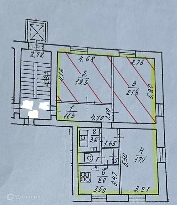 Жилая площадь 58.8 м2