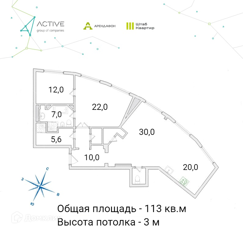 Общая площадь 113 м2