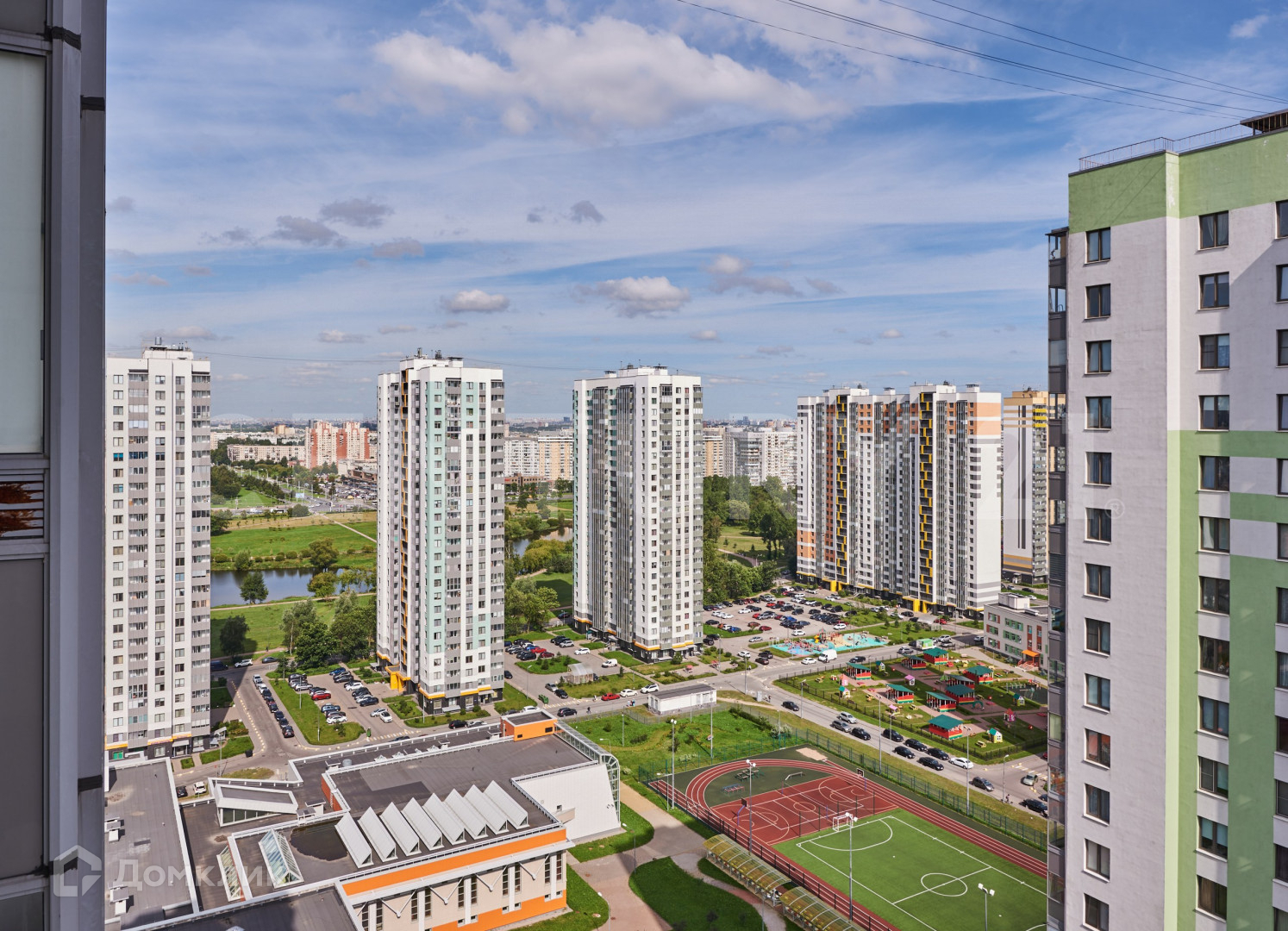 Прекрасная инфраструктура: во дворе расположен Губернаторский лицей  226 с доступным для взрослых и детей бассейном и два детских сада.