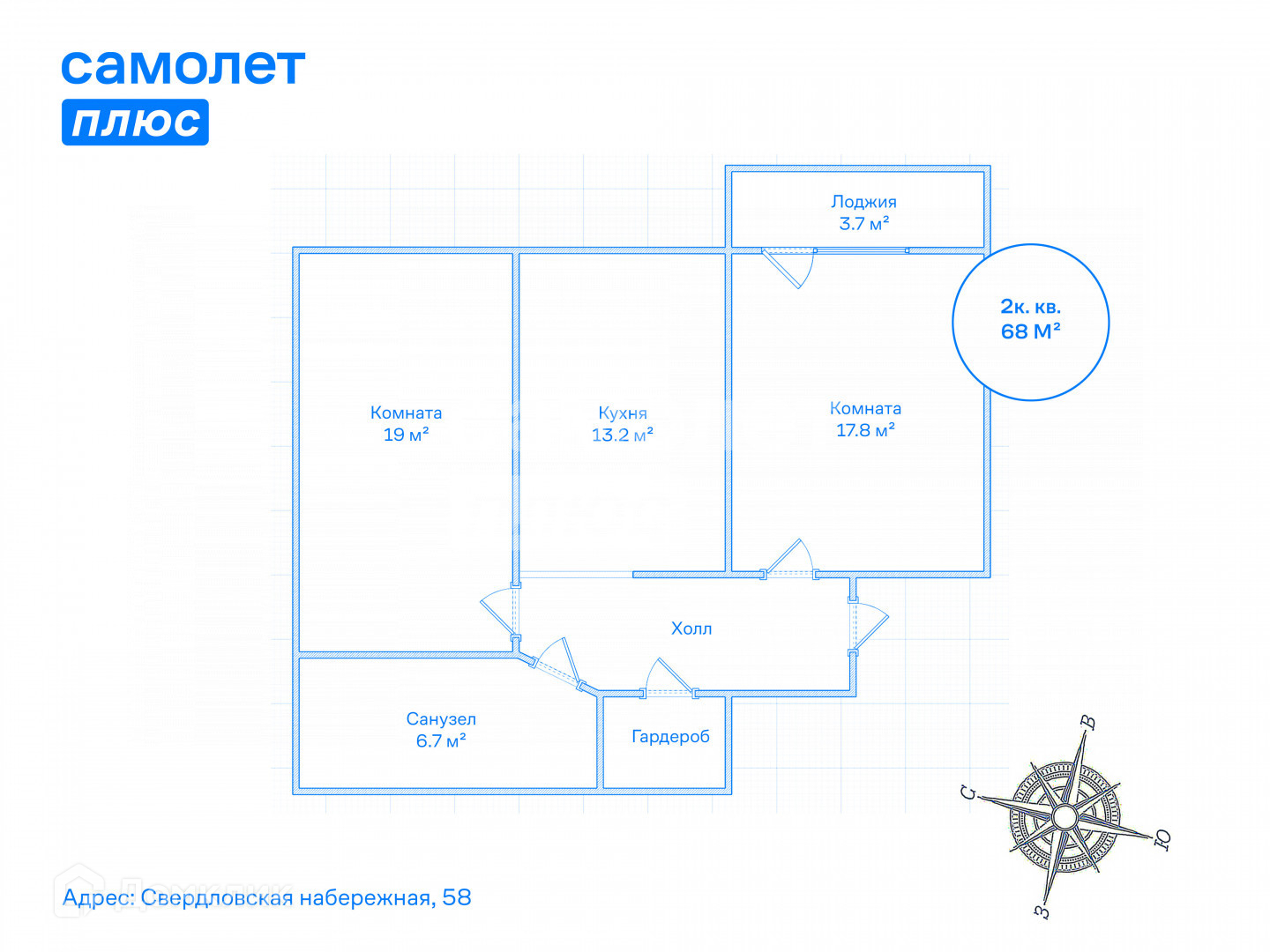 Общая площадь 68 м2