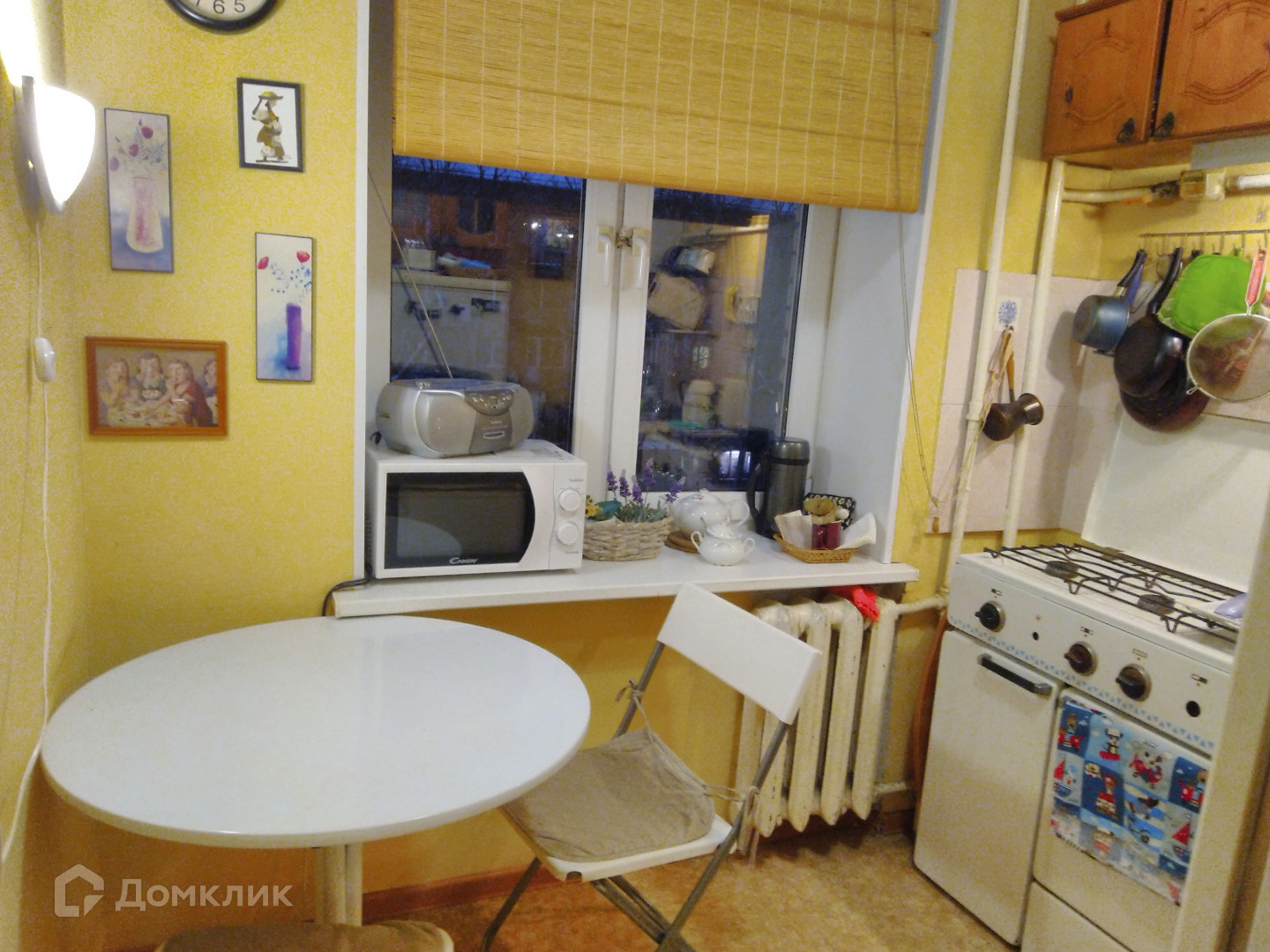 4 этаж 5-этажного кирпичного дома 1962 года постройки. Общая площадь 45,4 кв.м.. Комнаты 17,6+11,5 кв.м., смежные. При желании, их можно изолировать. Кухня 5,3 кв.м.. Сан-узел раздельный, душевая кабина. Горячая вода - газовая колонка. Есть эркер, окна выходят в тихий зелёный двор.