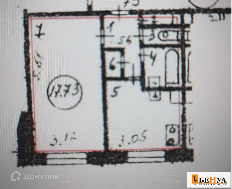 Жилая площадь 17.7 м2