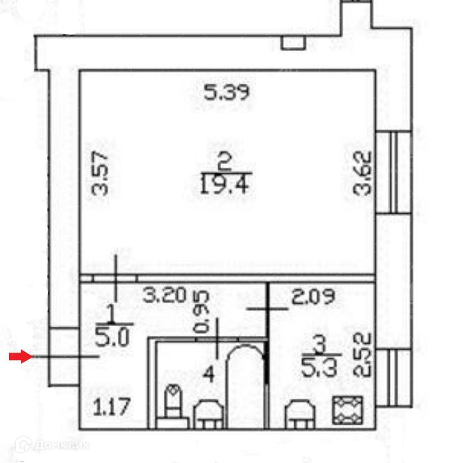 Жилая площадь 19.4 м2