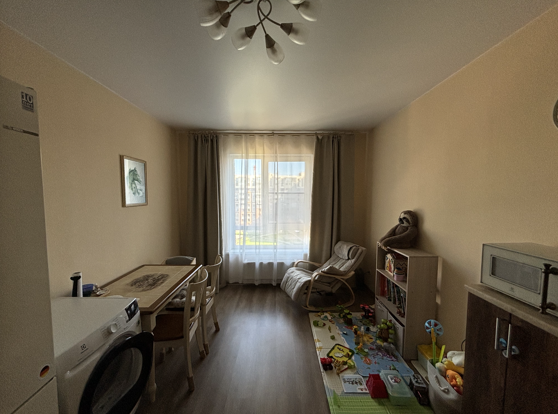 Из окон открывается прекрасный вид на огромный, зеленый, закрытый двор. Во дворе имеется 5 детских площадок, для детей разного возраста, и 2 спортивных площадки. Кроме того, рядом с домом находятся 2 школы, 4 детских сада, торговый центр, парк и 2 фитнес-центра, что делает этот район идеальным как для семей с детьми, так и для всех, кто ценит активный образ жизни.