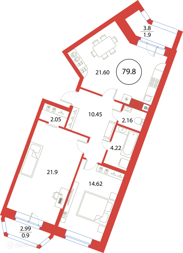 Общая площадь 79.8 м2