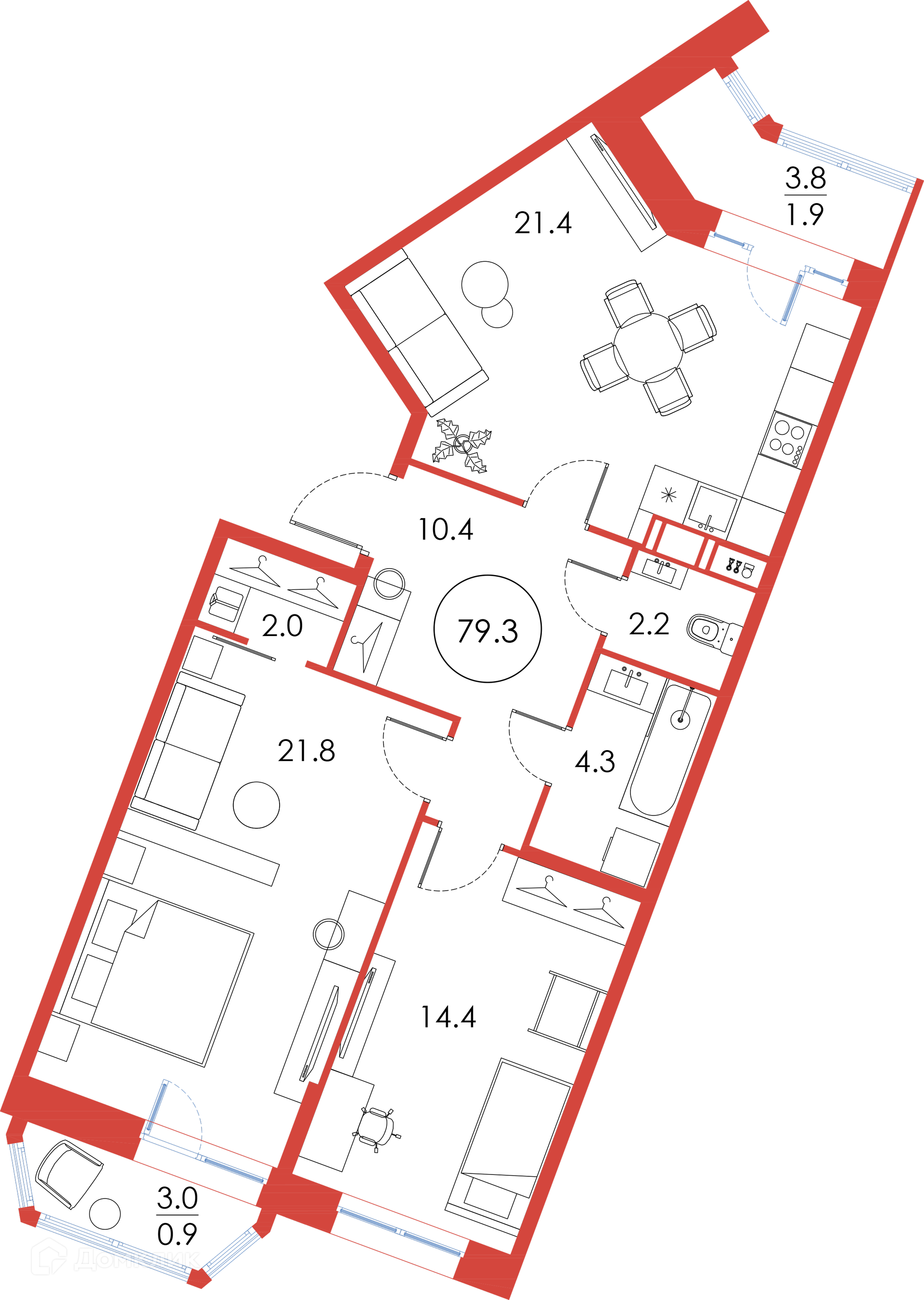 Общая площадь 79.3 м2