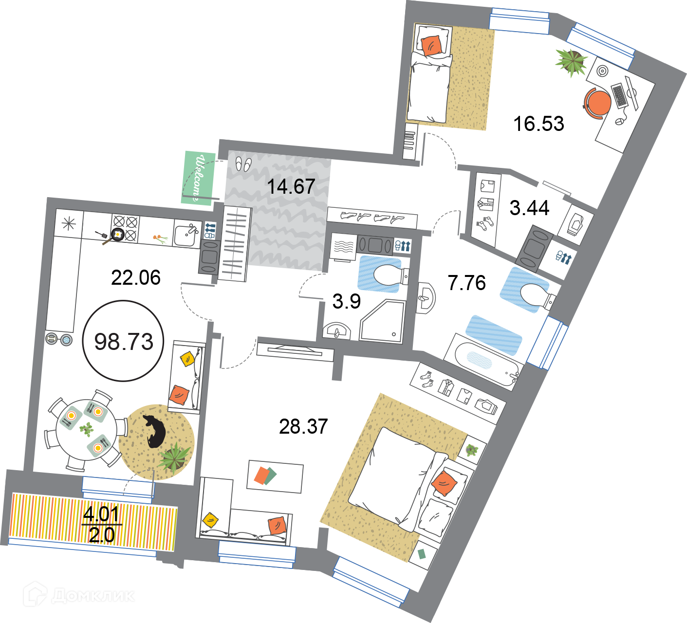 Общая площадь 98.73 м2