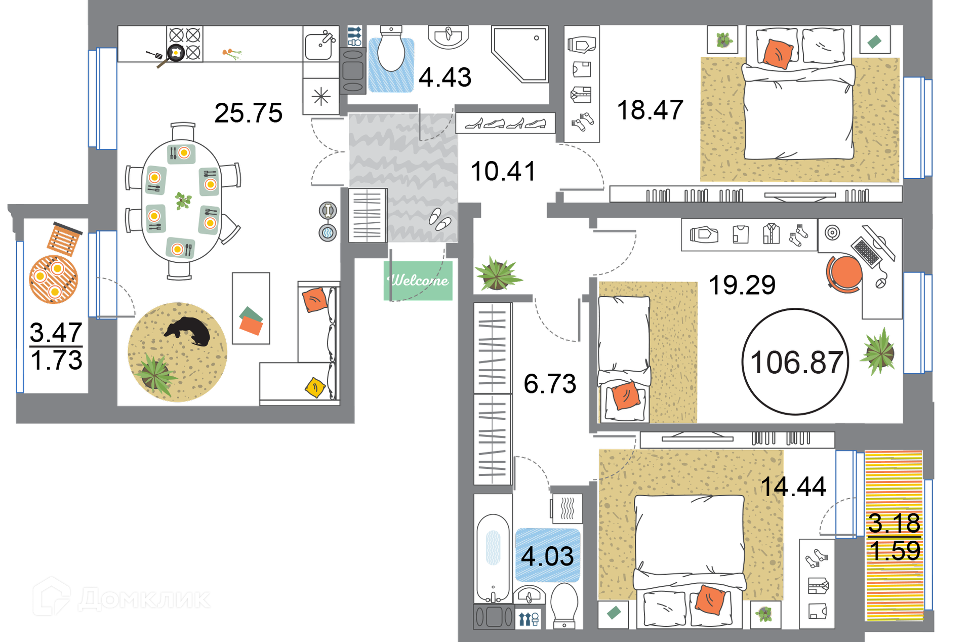 Общая площадь 106.87 м2