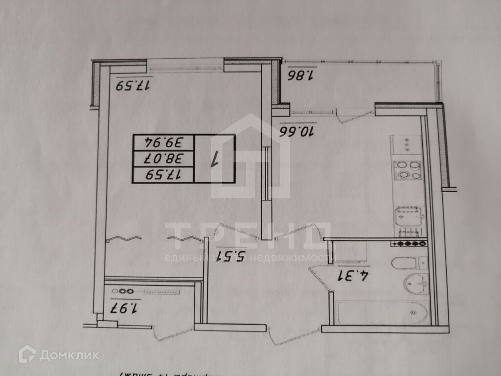 Общая площадь 37.6 м2