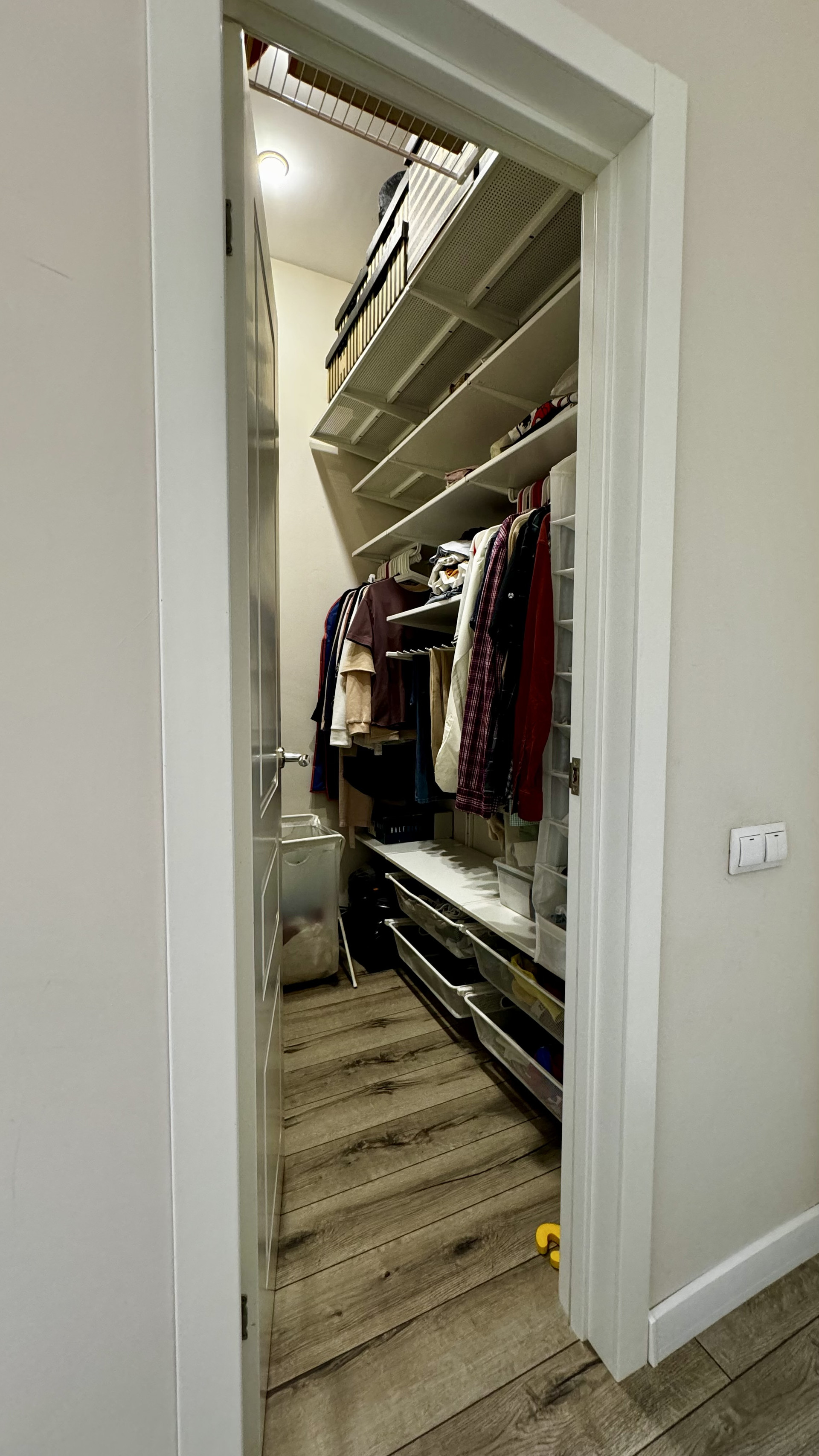 Квартира имеет грамотную эргономичную планировку: функциональная кухня и 2 раздельных комнаты в разных концах квартиры (планировка двухсторонняя). В спальне есть отдельная гардеробная комната.