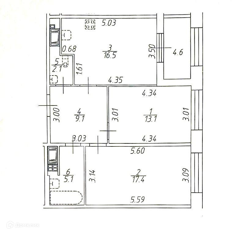 2-комнатная квартира, 63.3 м2, этаж 3 / 8, на продажу в Санкт-Петербурге, Петровский проспект, 26к2