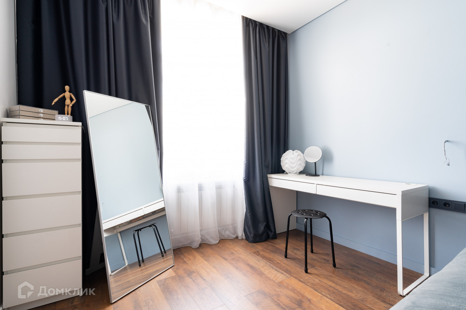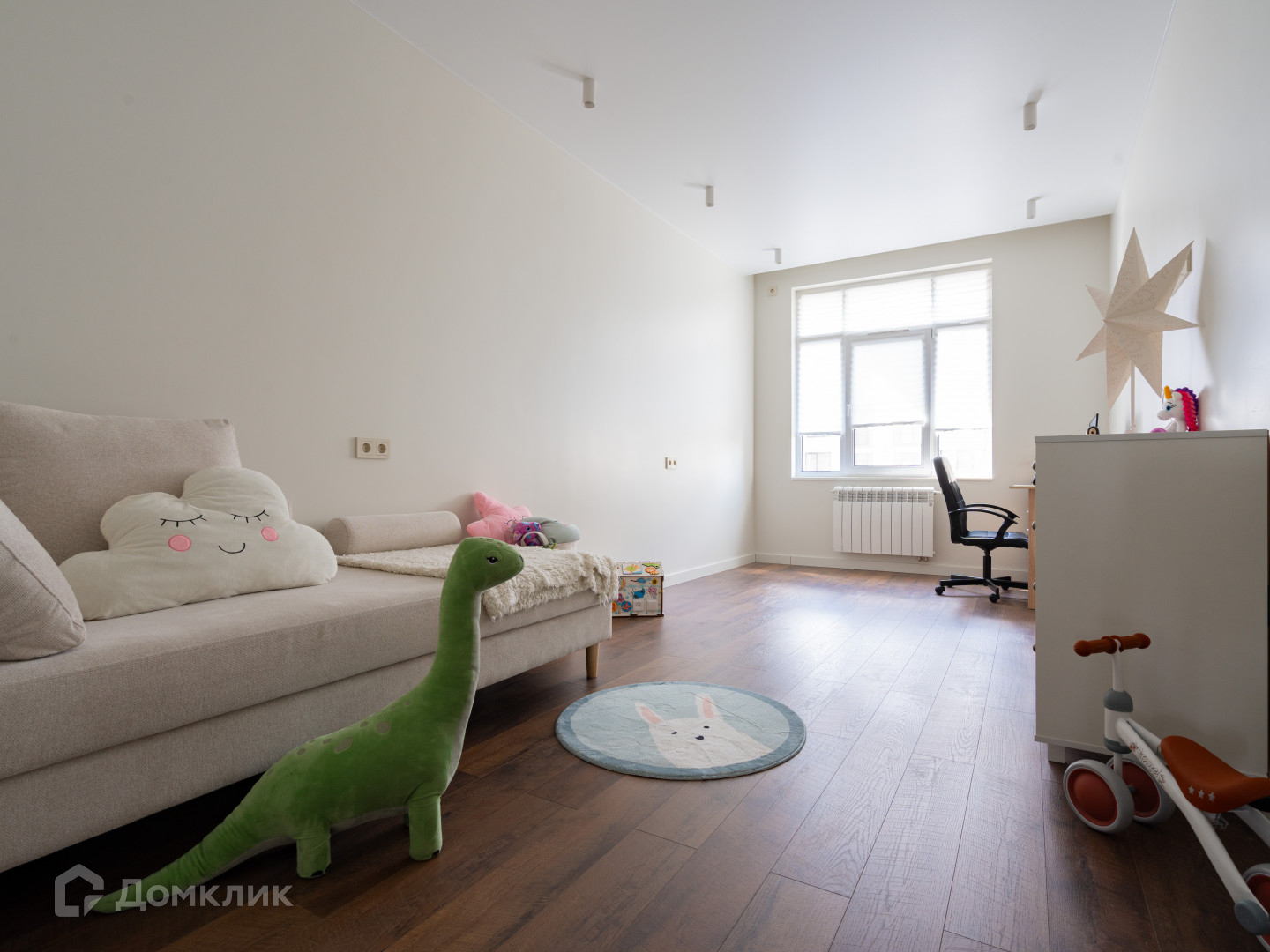 - Правильная двухсторонняя планировка с просторной кухней-гостиной, спальней, детской, гардеробной и постирочной;