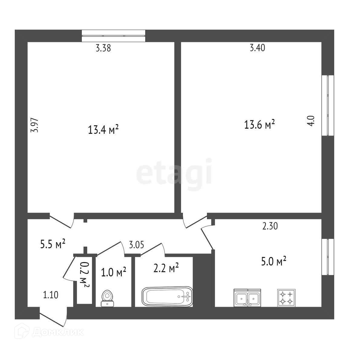 Общая площадь 40.9 м2