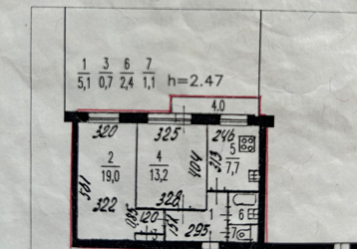 Высота потолков 2.5 м