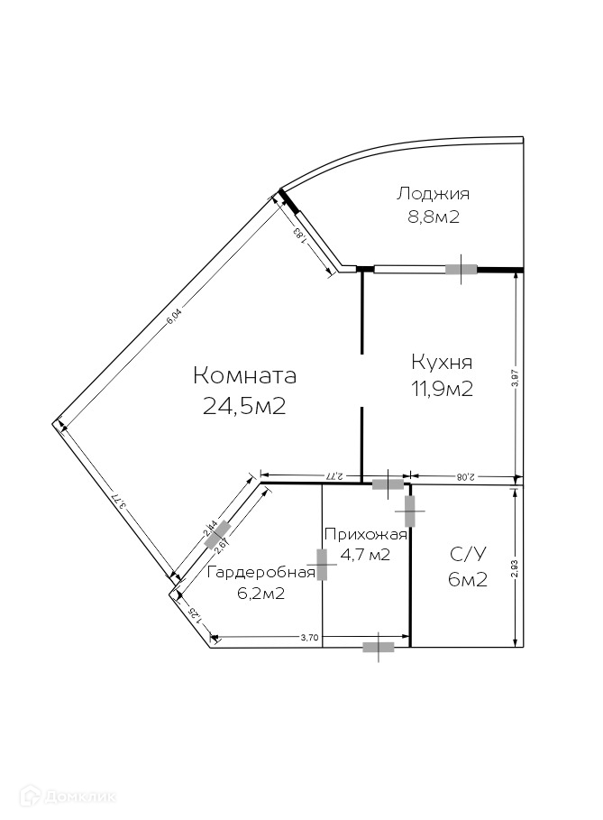 Жилая площадь 24.5 м2