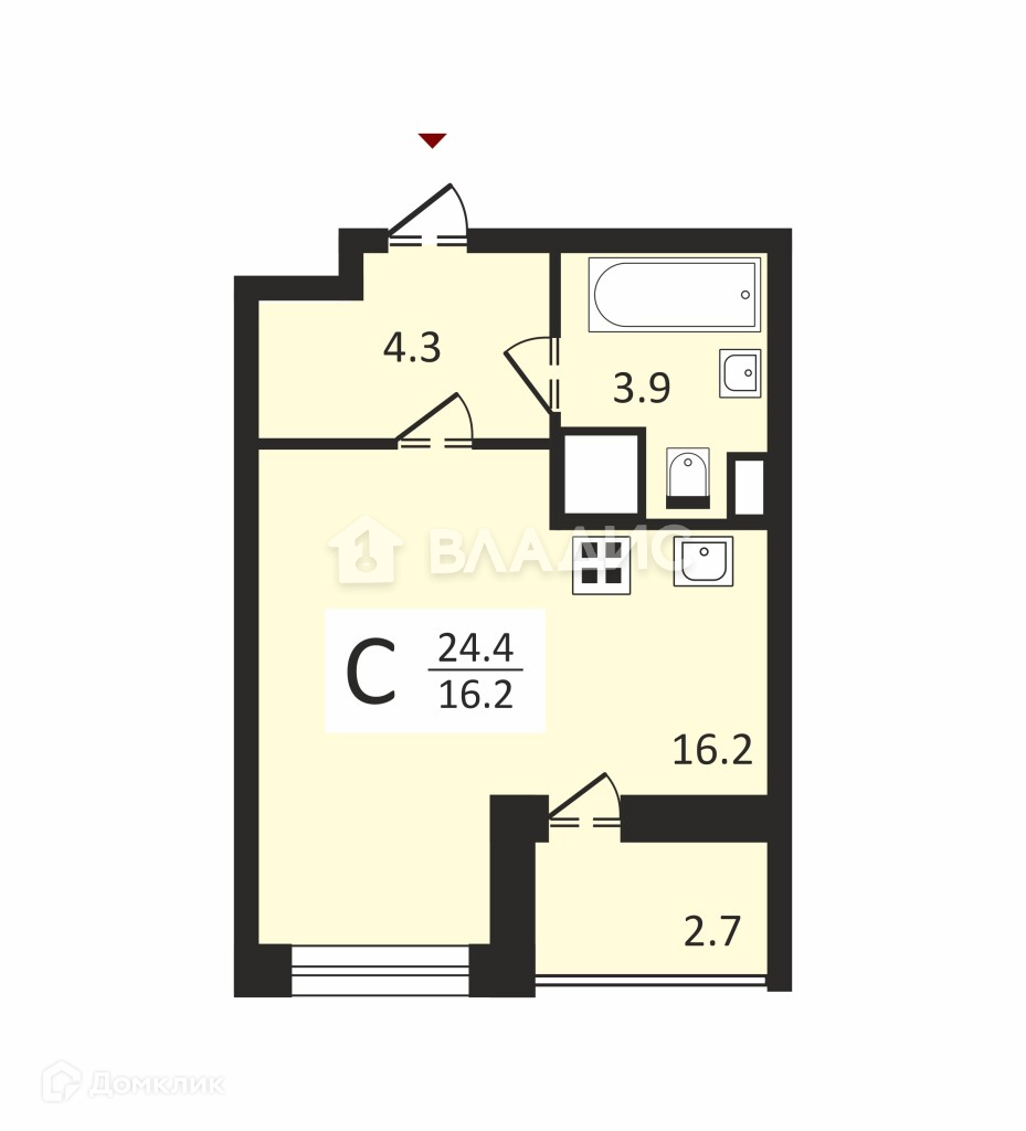 Общая площадь 24.4 м2