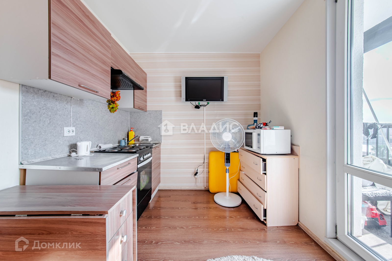 В квартире сделан ремонт. Натяжные потолки, ламинат. На балконе кафельная плитка. Кухонный гарнитур остаётся. В санузле кафельная плитка. Просторная прихожая.