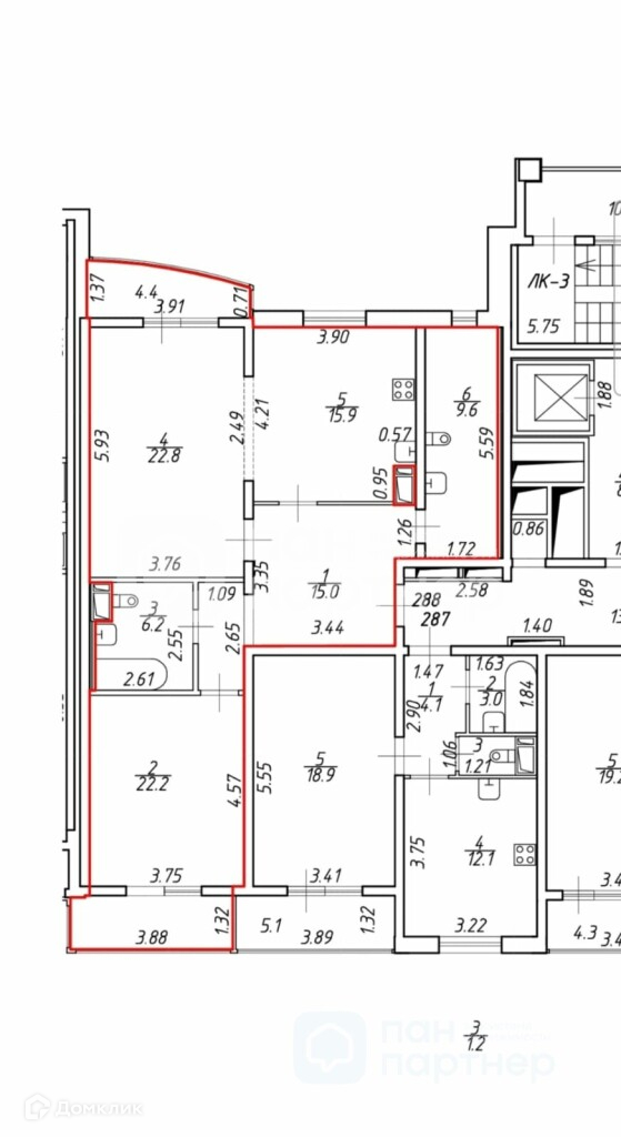 Двухсторонняя квартира находится на 9 этаже, с интересной просторной планировкой. 2 санузла, один из них -с окном. Есть 2 большие лоджии на разные стороны, можно увеличить площадь до 100м.