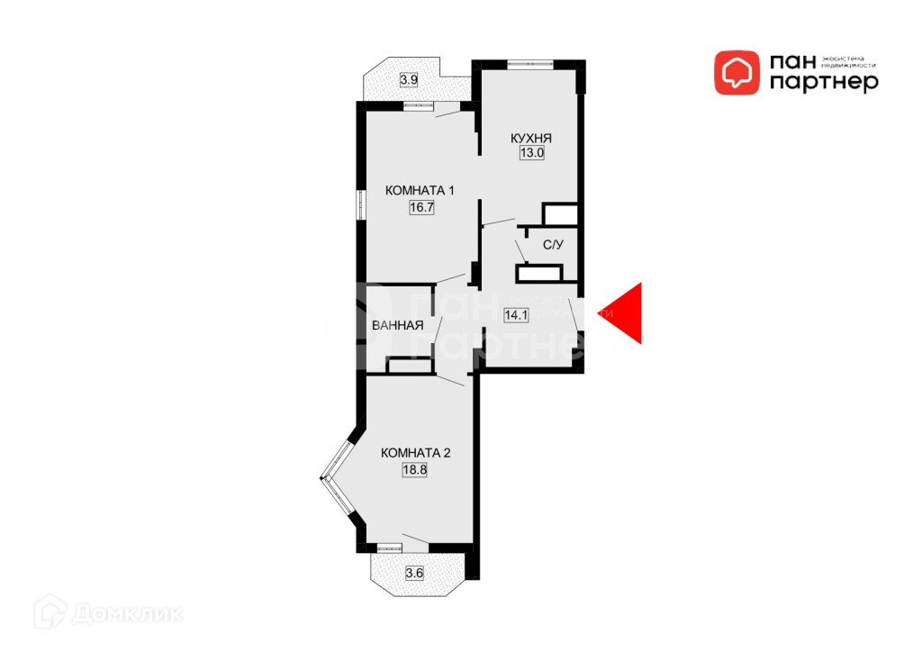 *2 балкона 3,6 и 3,9