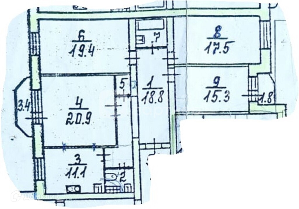 Квартира двухсторонняя, общей площадью 110,9 кв.м., с двумя балконами и большими раздельно расположенными ванной комнатой и туалетом. 4 изолированных комнаты правильной формы площадью 19,4+20,9+17,5+15,3 кв.метров, Просторная прихожая+закрывающееся отгороженная входная группа на 2 квартиры. Кухня 11,1 кв.метра. Также в квартире есть вместительная кладовая. Окна на 2 стороны - запад и восток, утреннее и вечернее солнце без дневной жары. На лестничной клетке всего 4 квартиры, нет студий. Два лифта, грузовой и пассажирский.